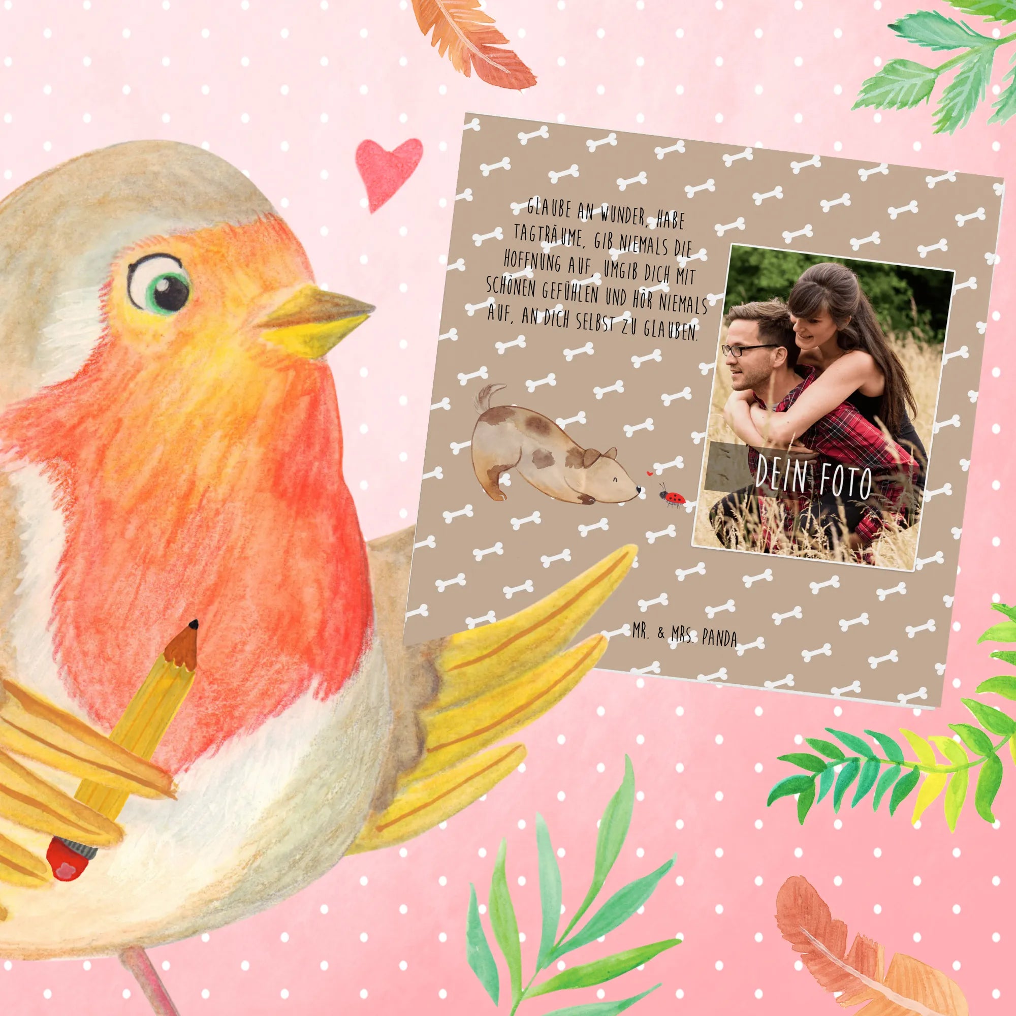Diese Karte ist nicht nur ein wunderschönes Geschenk für Hundeliebhaber, sondern auch ein idealer Ausdruck von Freundschaft und Zuneigung. Die Kombination aus niedlichem Hunde-Motiv und der Möglichkeit zur Personalisierung macht sie zu einem ganz besonderen Mitbringsel. Lass deiner Kreativität freien Lauf und überrasche deine Freunde oder Familienmitglieder mit einer einzigartigen Grußkarte, die so individuell ist wie sie selbst! Die Hunde Kollektion von Mr. & Mrs. Panda bietet dir eine Vielzahl weiterer Produkte, die jedem Hundehalter ein Lächeln ins Gesicht zaubern werden. Verbinde dein Foto mit dem zauberhaften Marienkäfer-Motiv und zeige der Welt, wie viel Freude und Liebe ein Hund in dein Leben bringt.