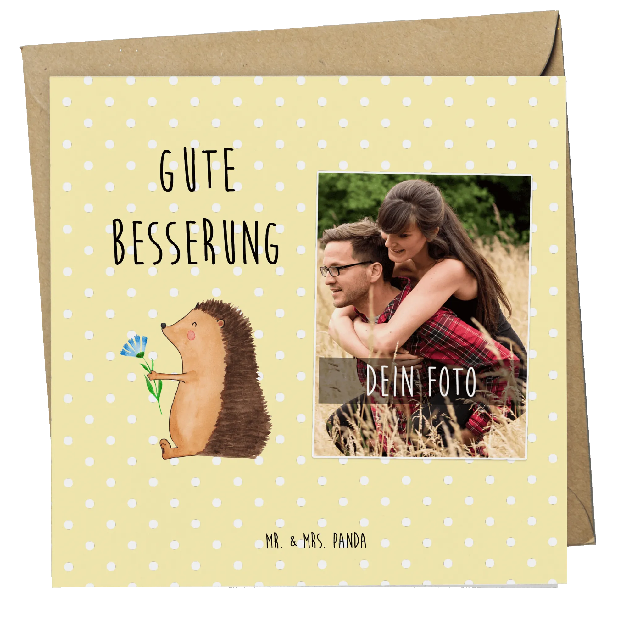 Personalisierte Foto Deluxe Karte Igel Blumen - Weiß