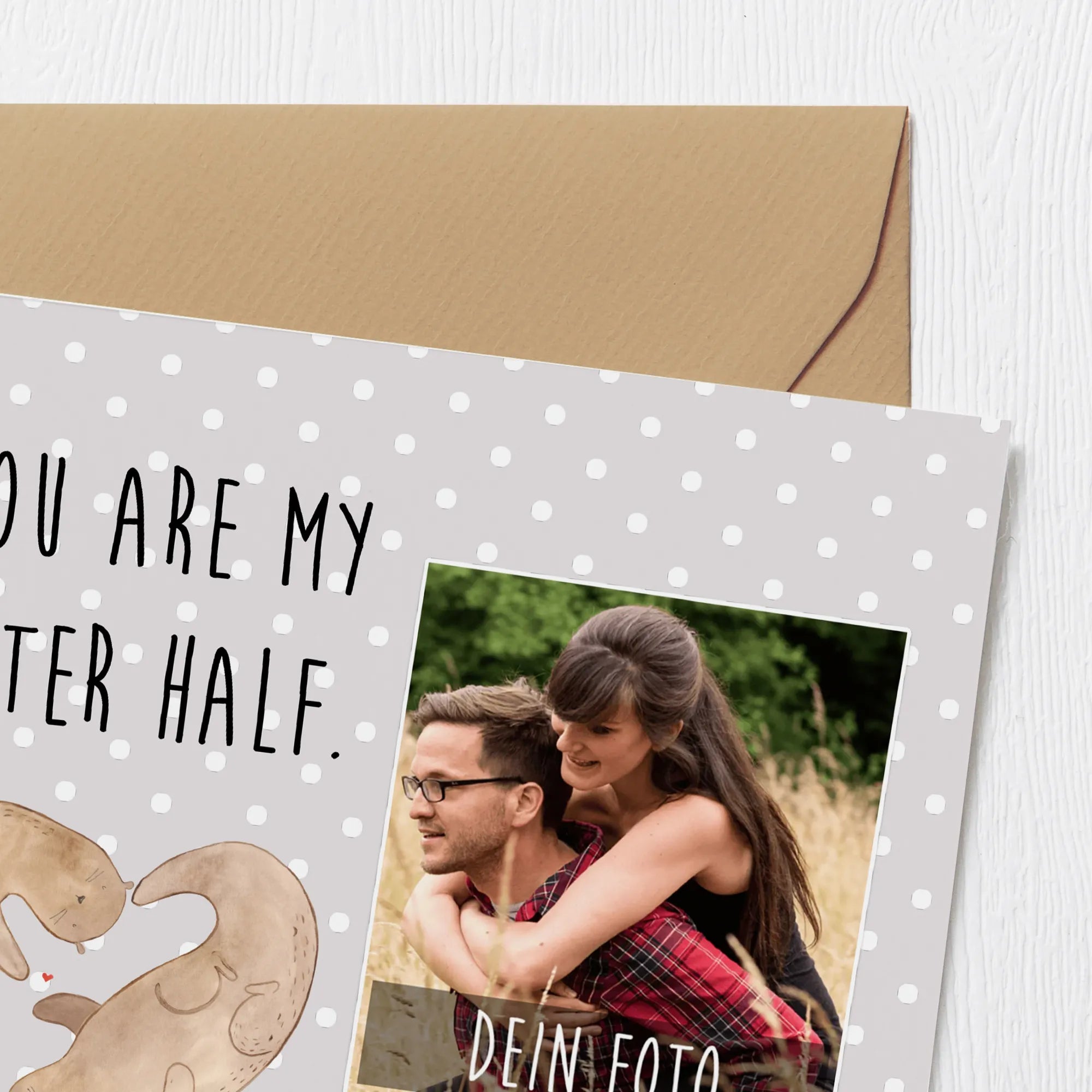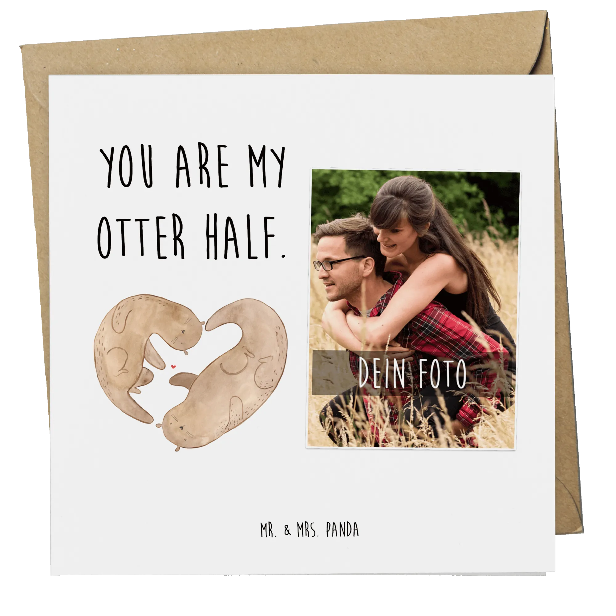 Wenn du auf der Suche nach dem perfekten Geschenk für deine bessere Hälfte bist, dann haben wir mit der personalisierten Foto Deluxe Karte "Otter Herz" aus der Otter-Kollektion das ideale Präsent für dich! Diese liebevoll gestaltete Karte ist nicht nur ein süßer Liebesbeweis, sondern auch ein persönlicher Ausdruck deiner Gefühle.