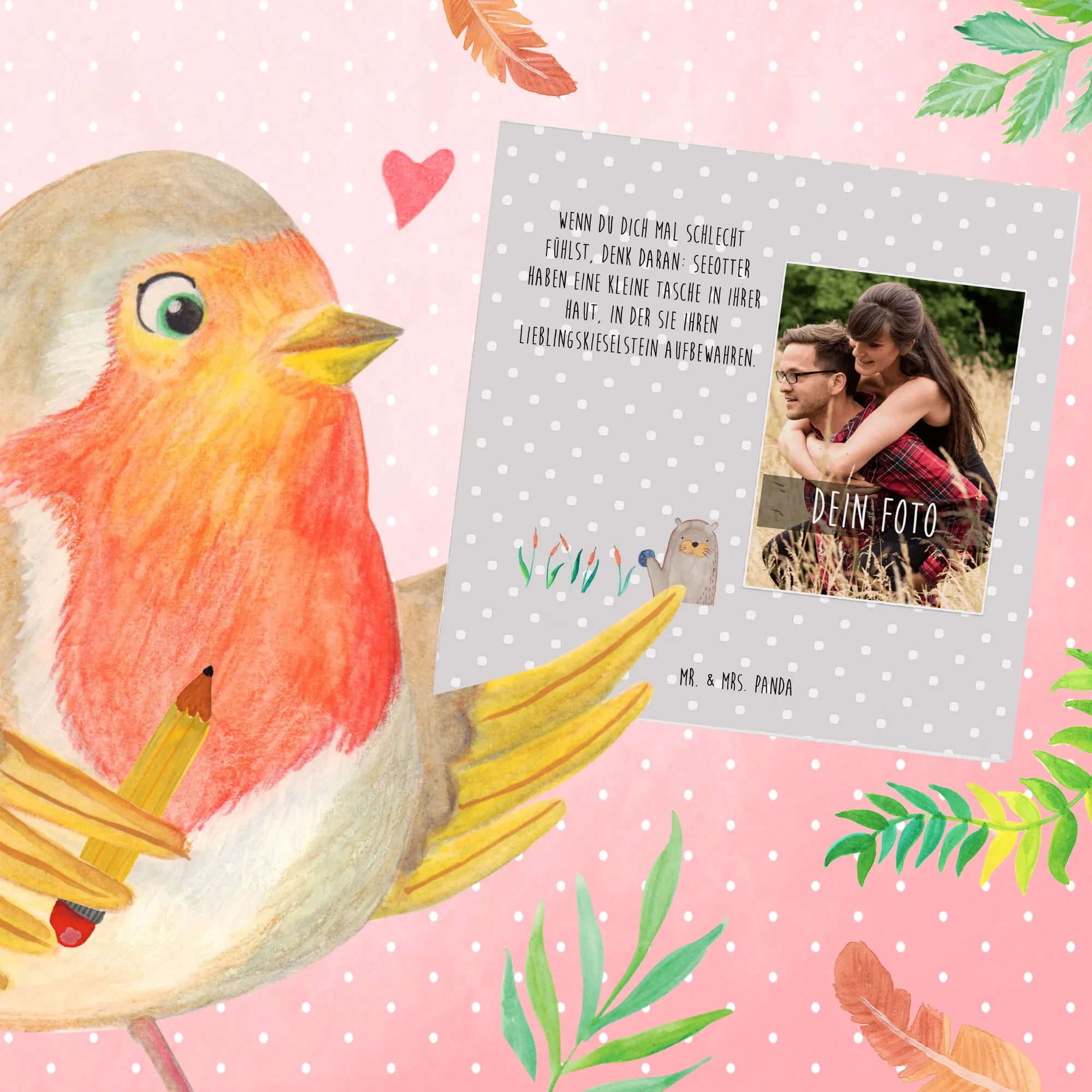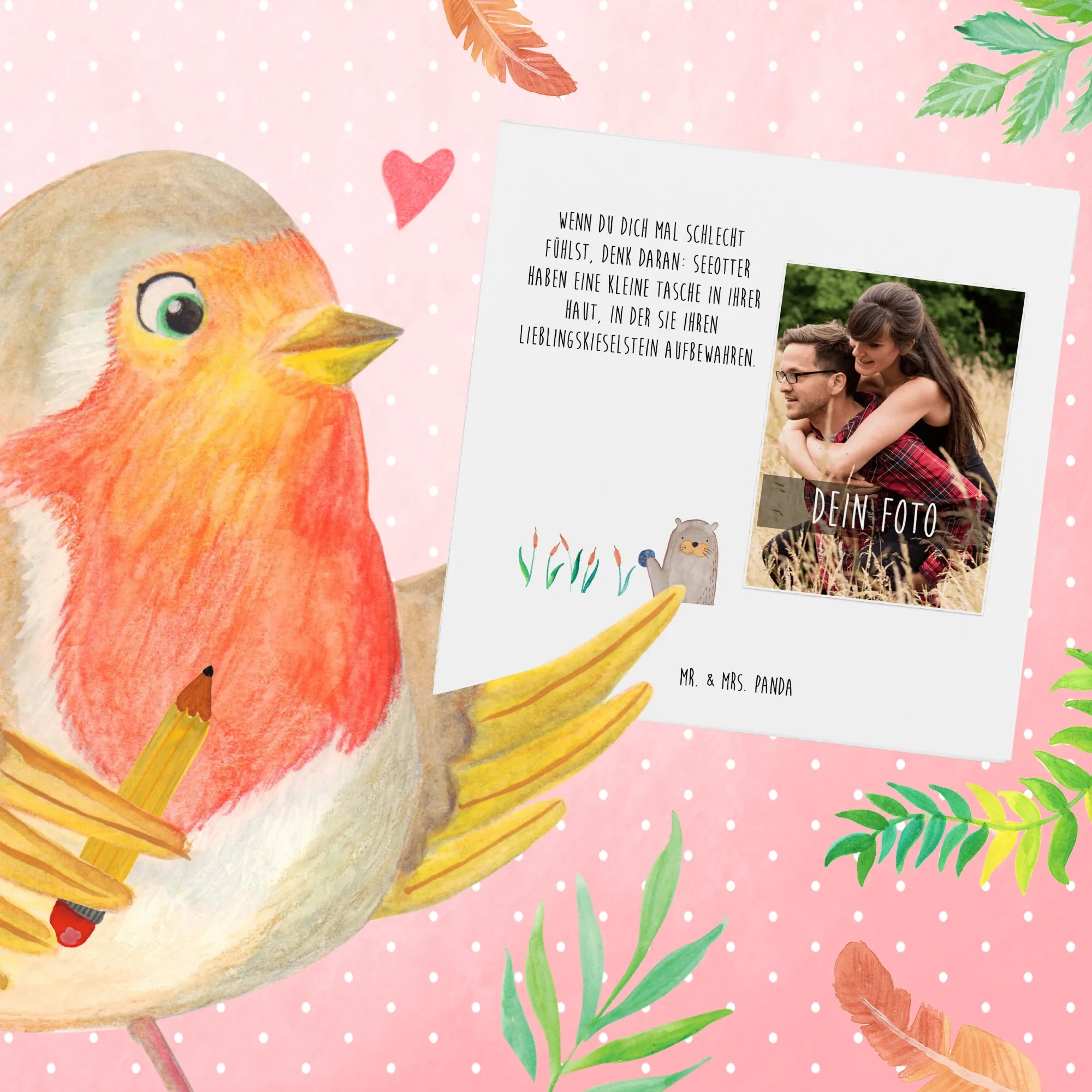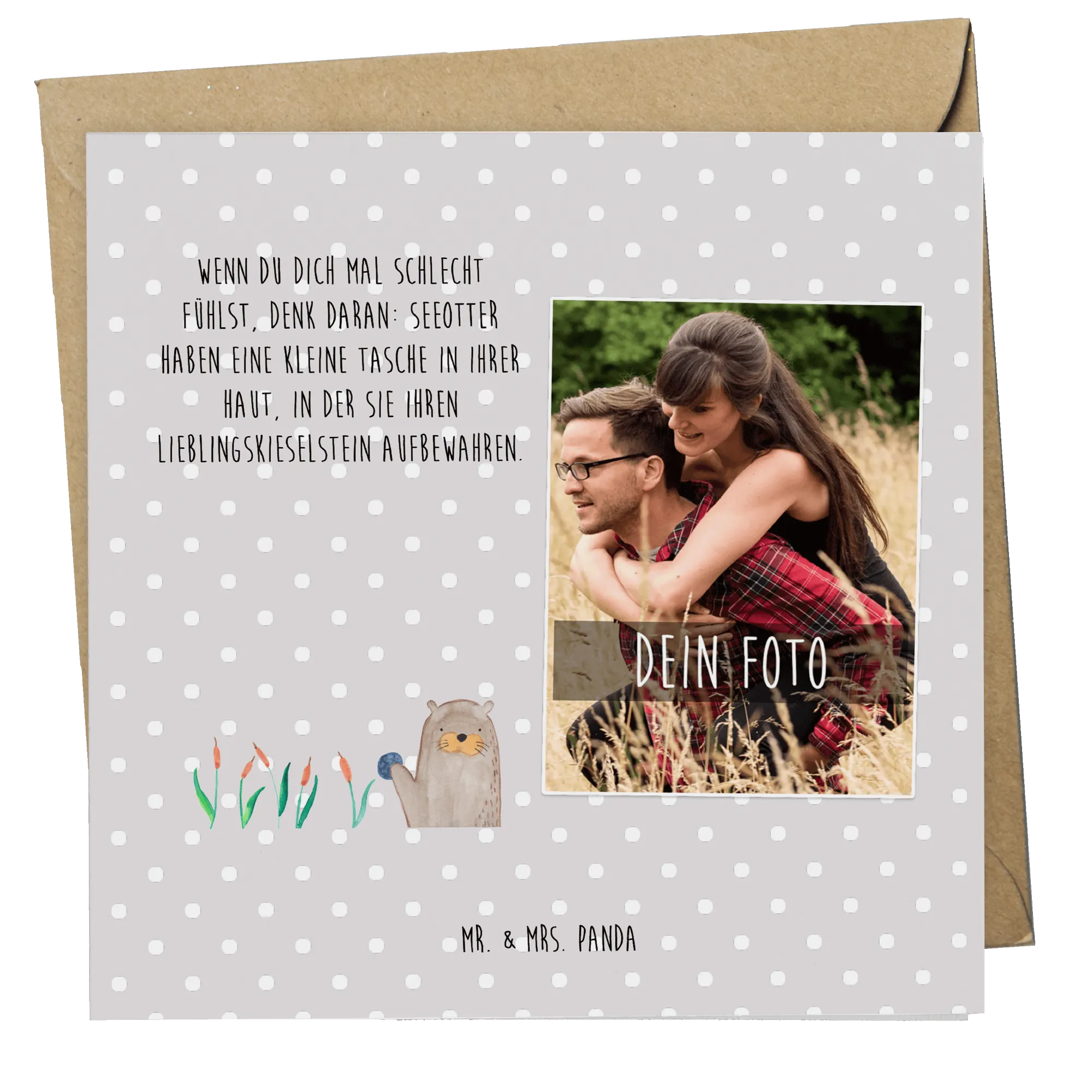 Egal ob für Geburtstage, Hochzeiten oder als kleine Aufmerksamkeit zwischendurch, diese personalisierte Karte ist immer die richtige Wahl. Bringe deine eigenen Fotos und Wünsche ein – die Innenseite bietet genügend Platz für persönliche Botschaften! Mit dem Slogan "Wenn du dich mal schlecht fühlst, denk daran: Seeotter haben eine kleine Tasche in ihrer Haut, in der sie ihren Lieblingskieselstein aufbewahren" wirst du das Herz des Empfängers sicherlich erobern.