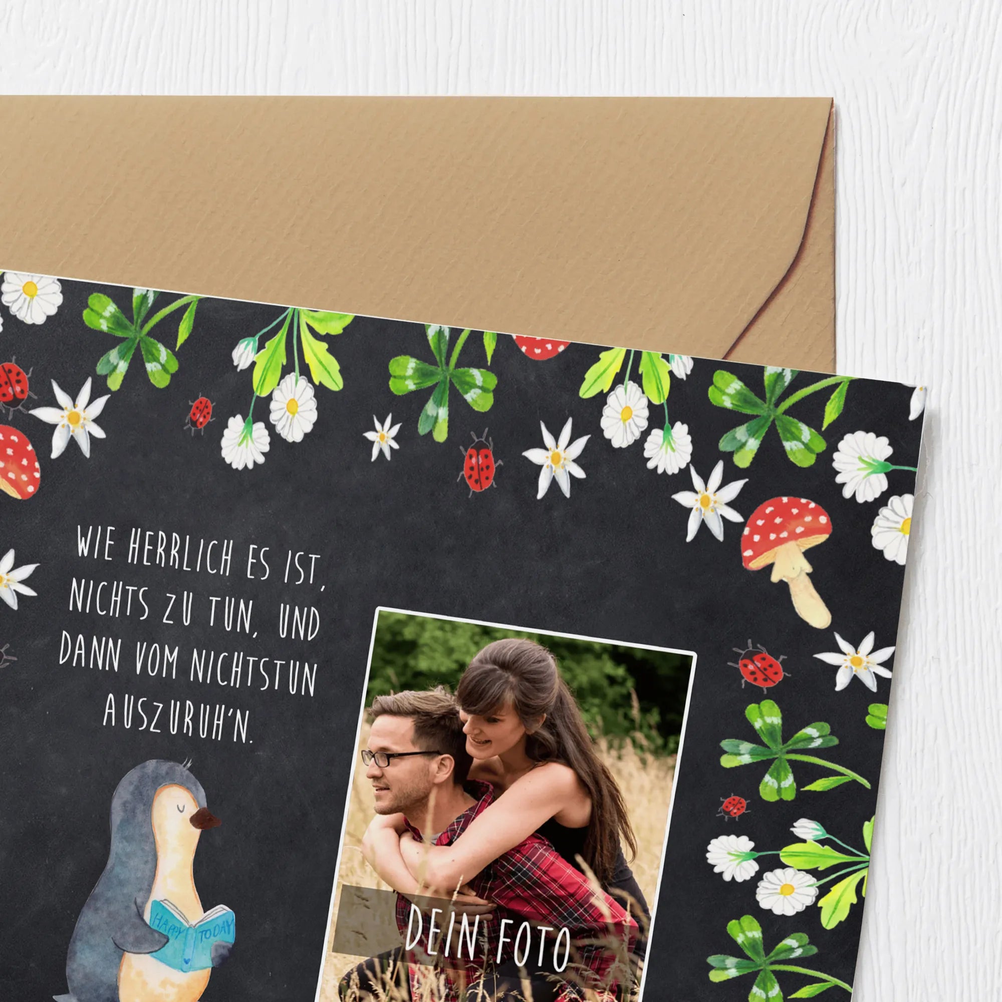 Personalisierte Foto Deluxe Karte Pinguin Buch - Kreidetafel