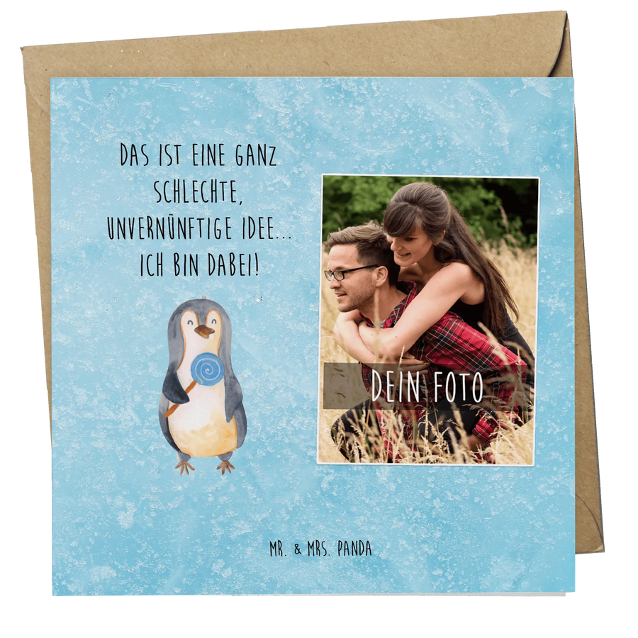 Personalisierte Foto Deluxe Karte Pinguin Lolli - Eisblau