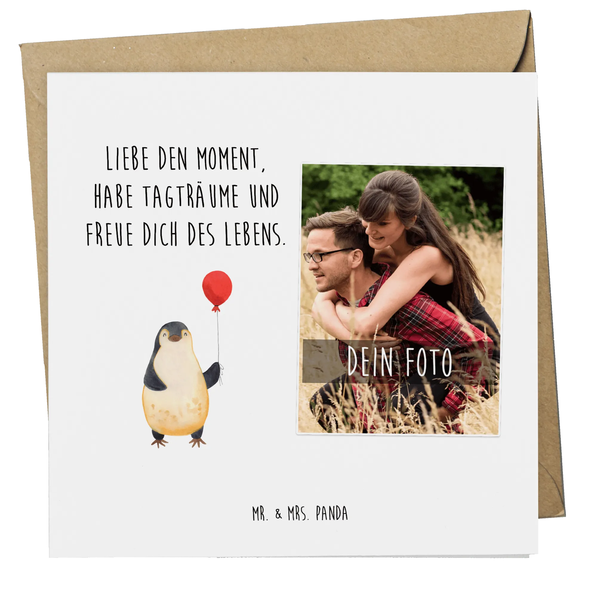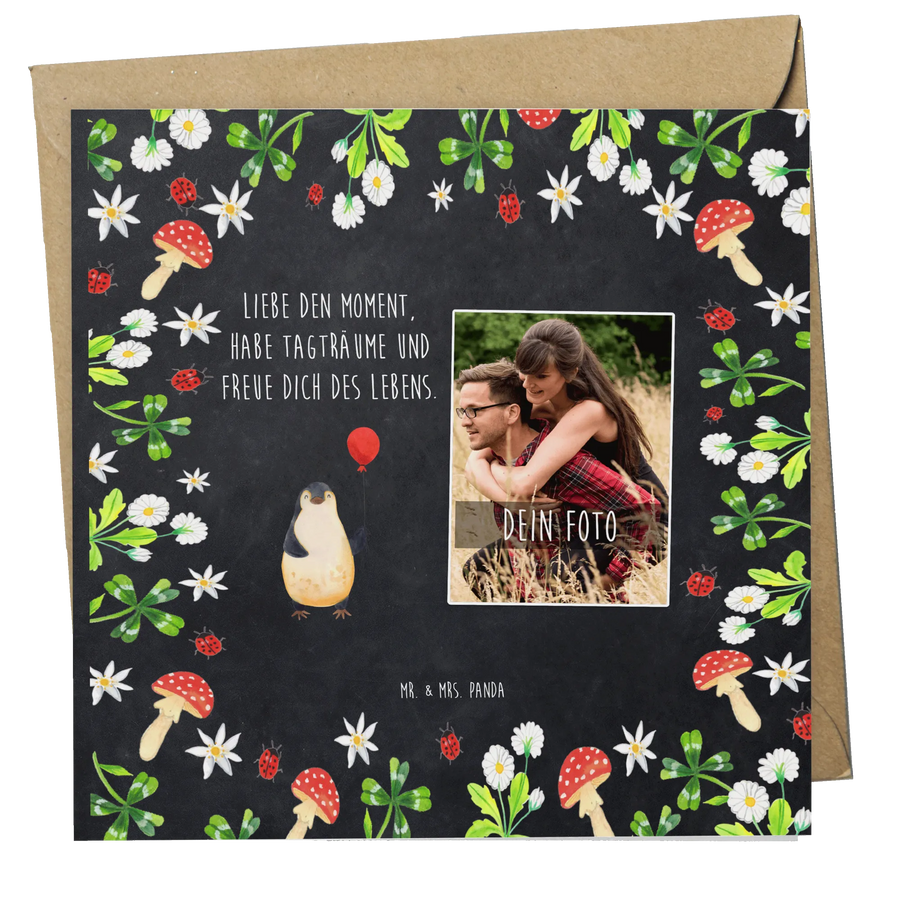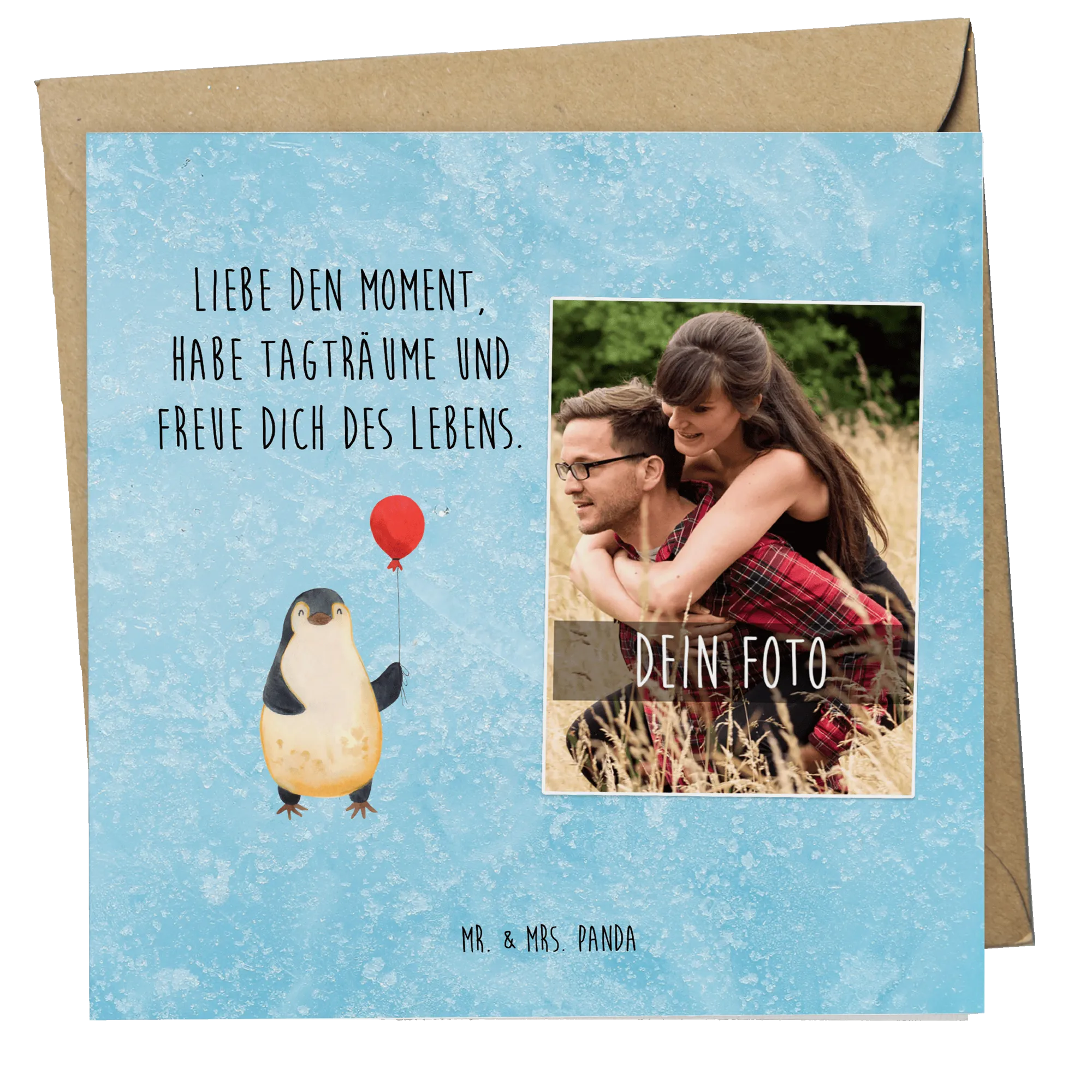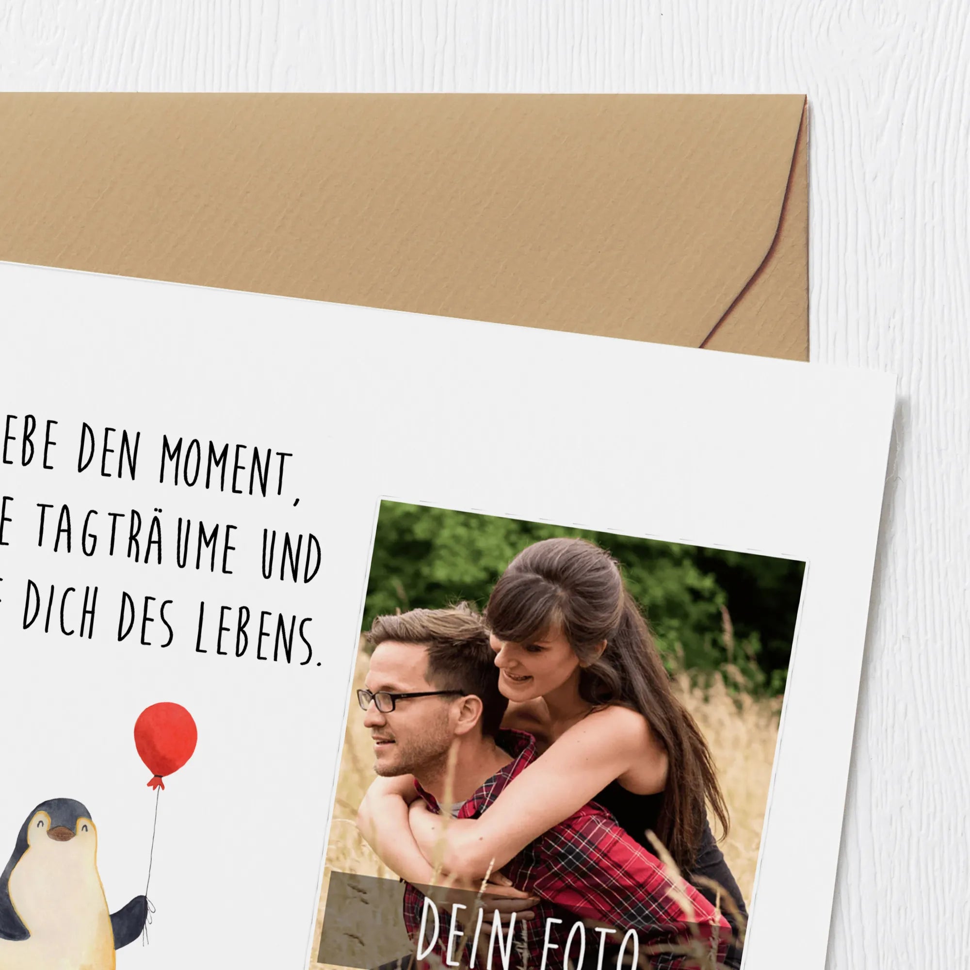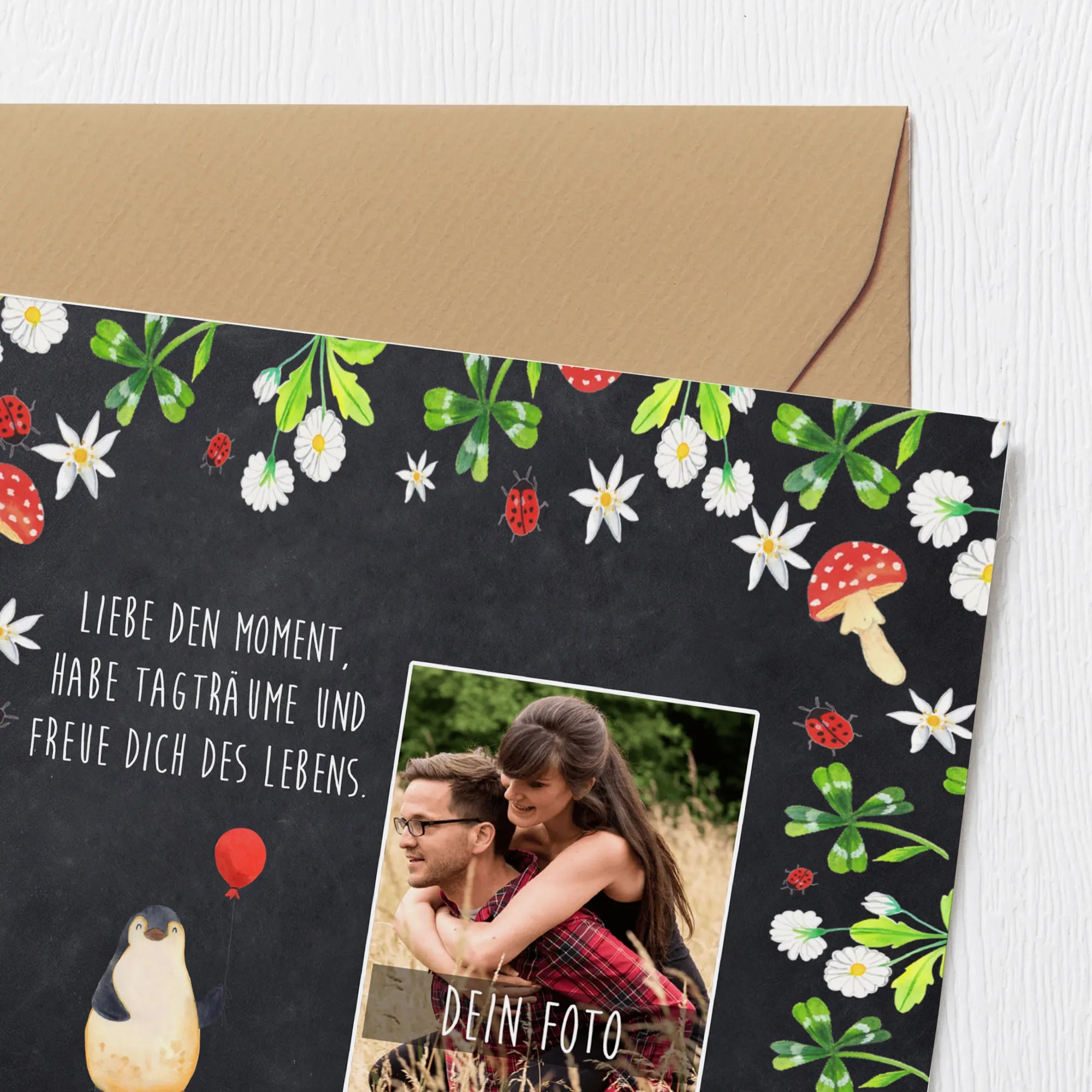 Personalisierte Foto Deluxe Karte Pinguin Luftballon - Kreidetafel