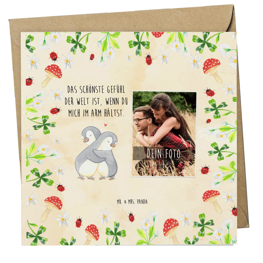 Die personalisierte Foto Deluxe Karte mit dem zauberhaften Motiv "Pinguine Kuscheln" von Mr. & Mrs. Panda ist das ideale Geschenk für alle Liebenden, die ihre Gefühle auf eine besondere Art und Weise ausdrücken möchten.
