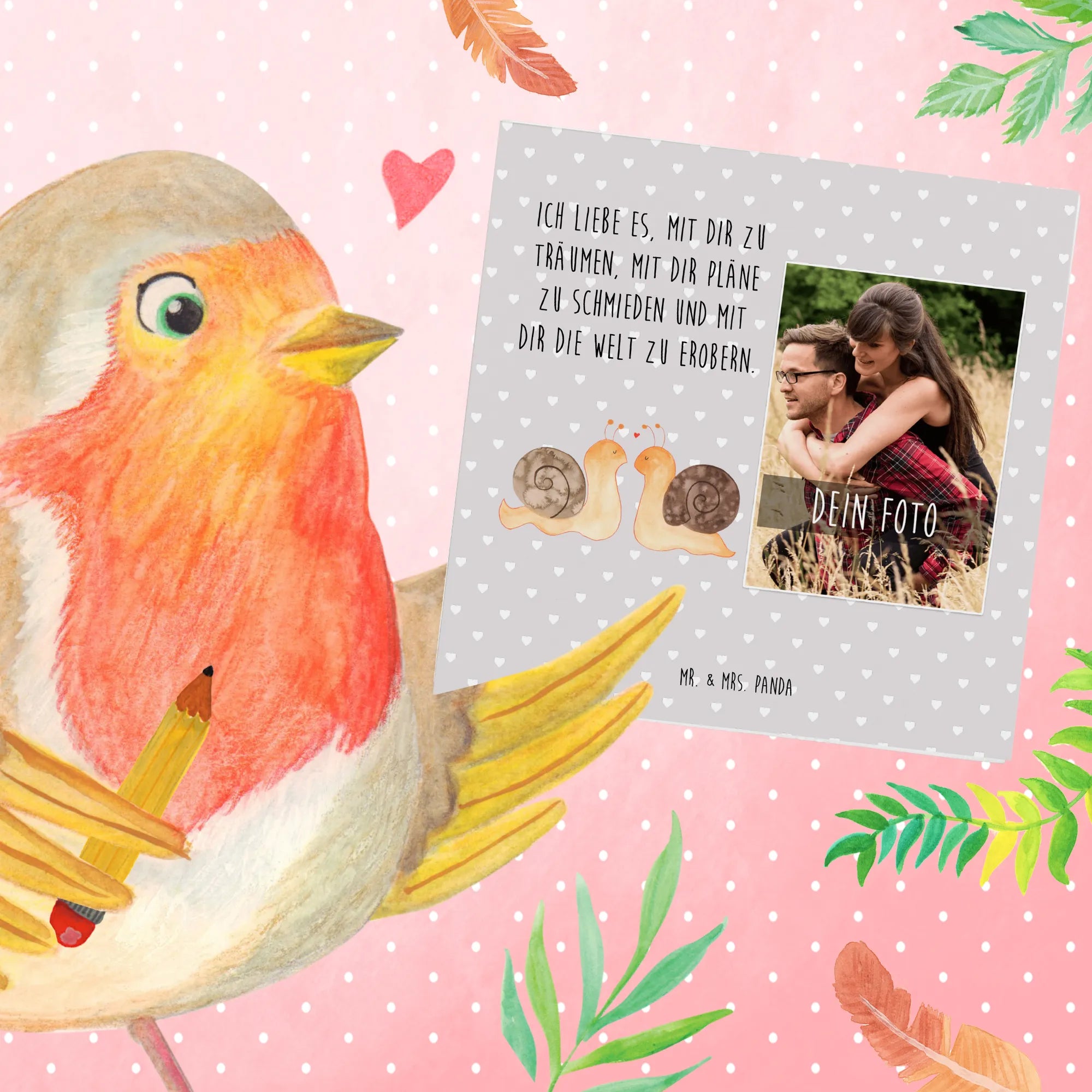 Personalisierte Foto Deluxe Karte Schnecken Liebe - Grau Pastell