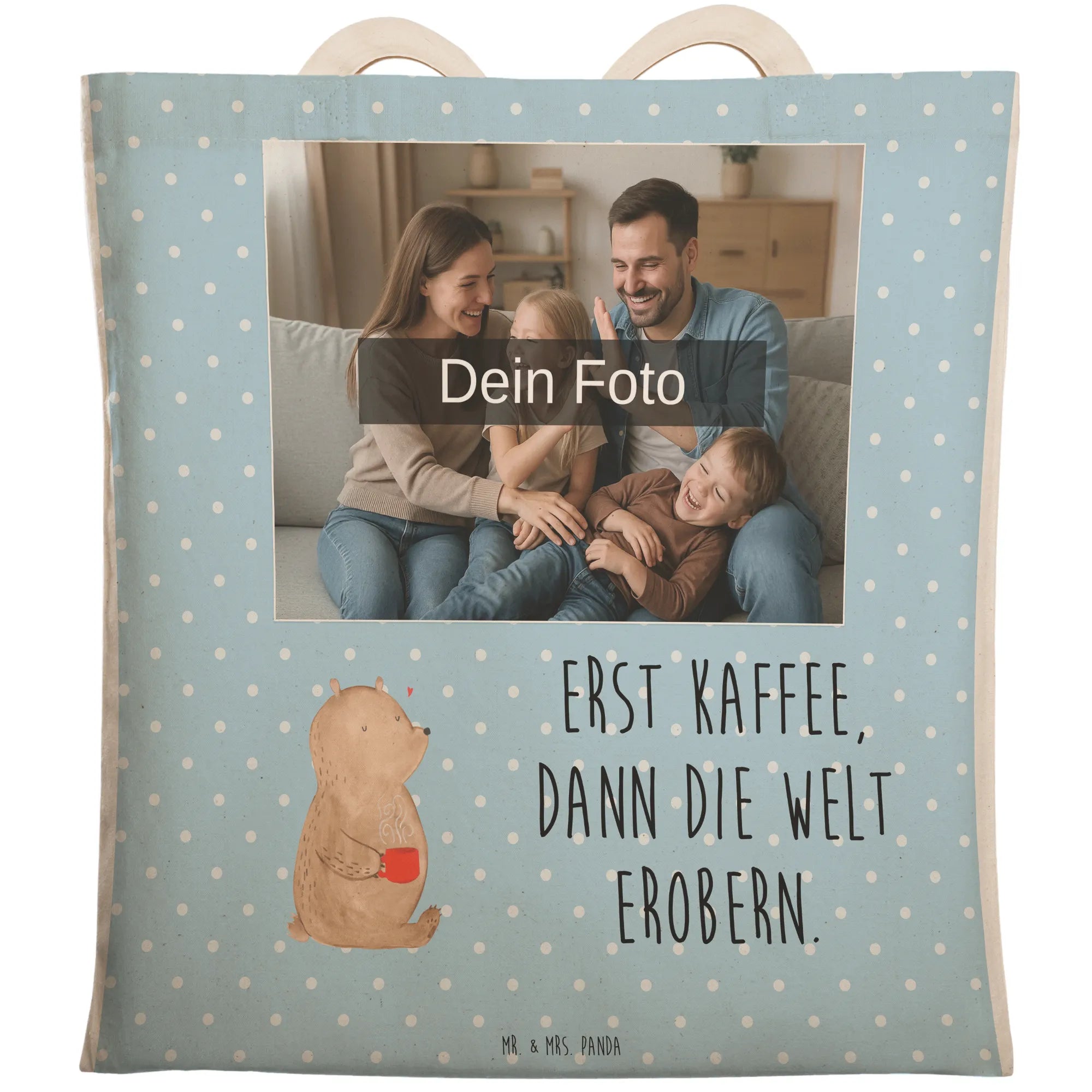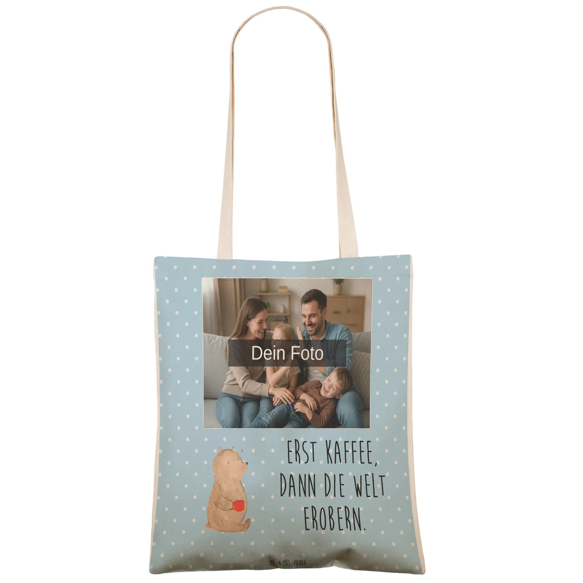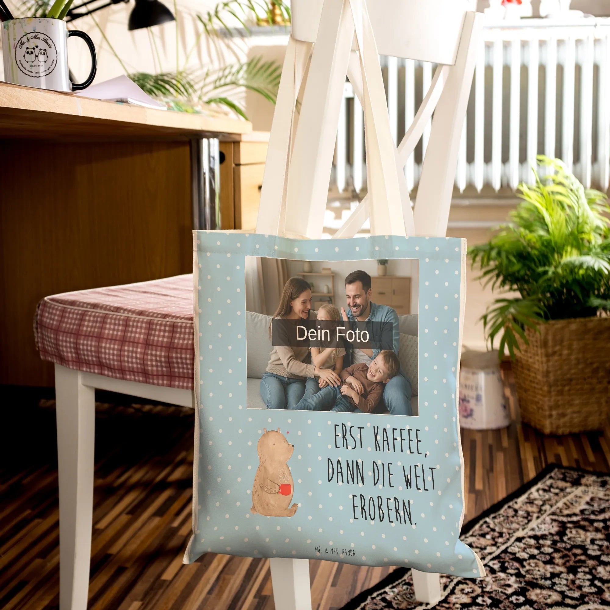 Personalisierte Foto Einkaufstasche Bär Kaffee
