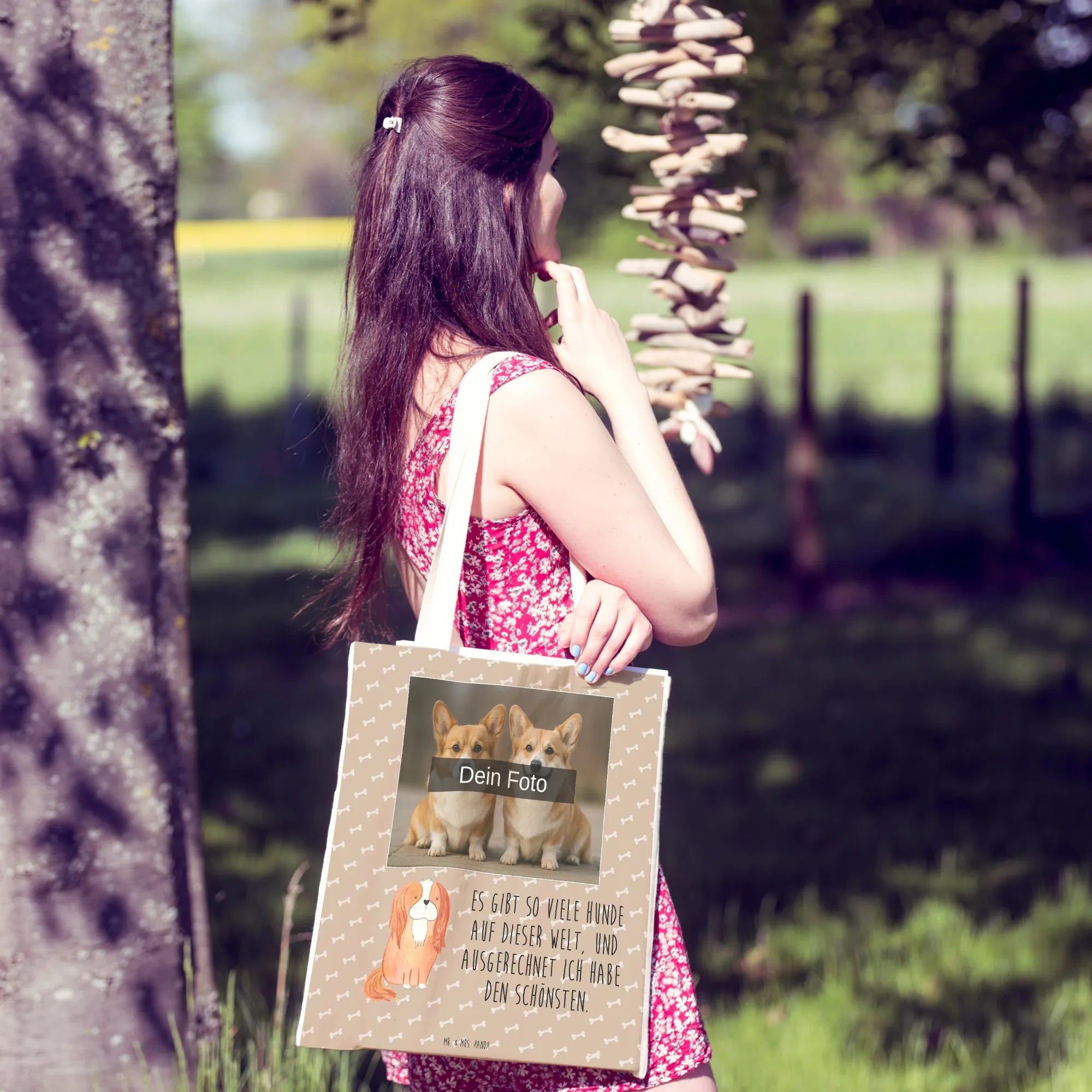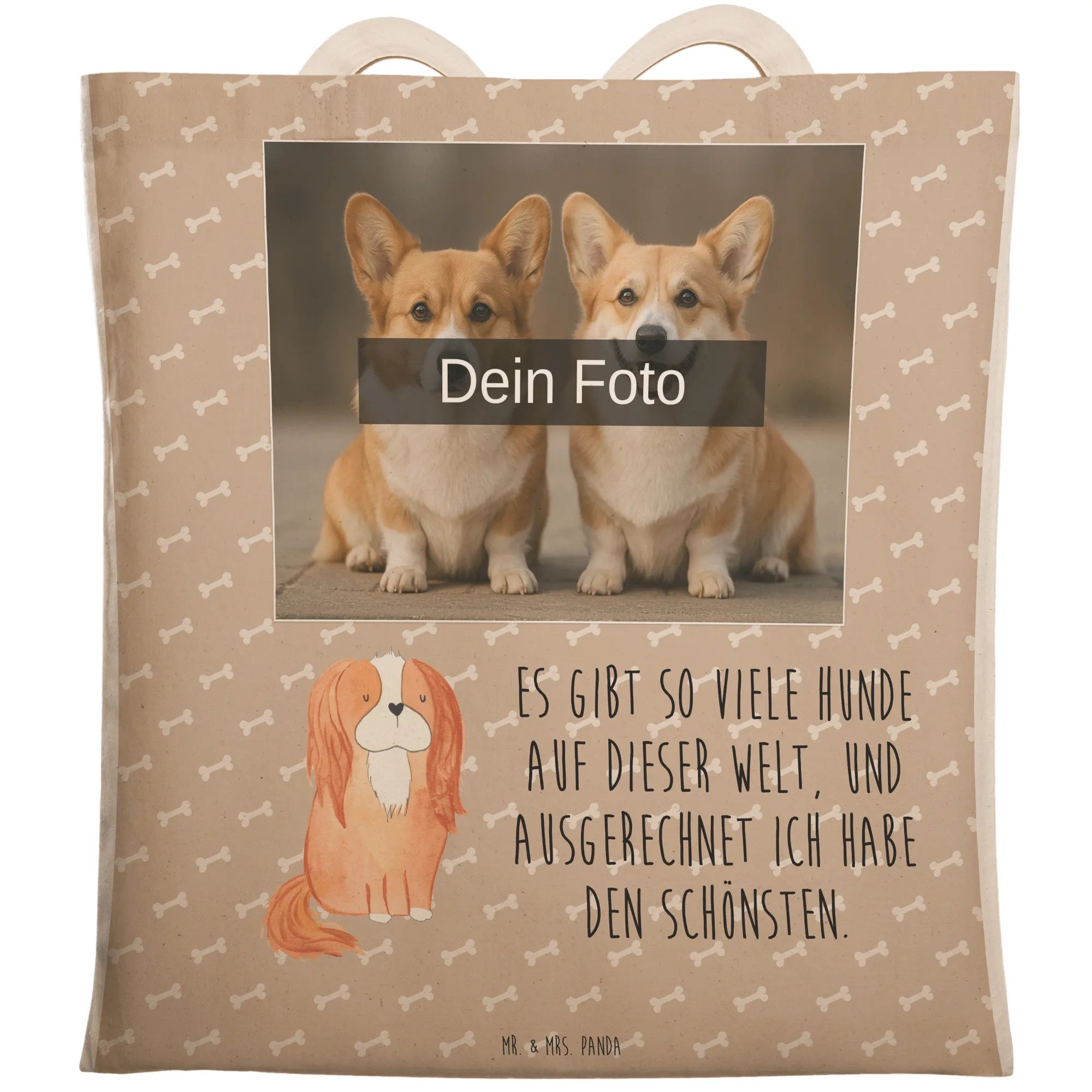 Personalisierte Foto Einkaufstasche Hund Cavalier King Charles Spaniel - Grau Pastell