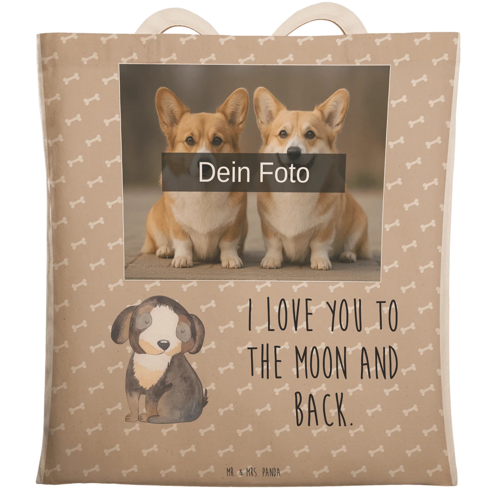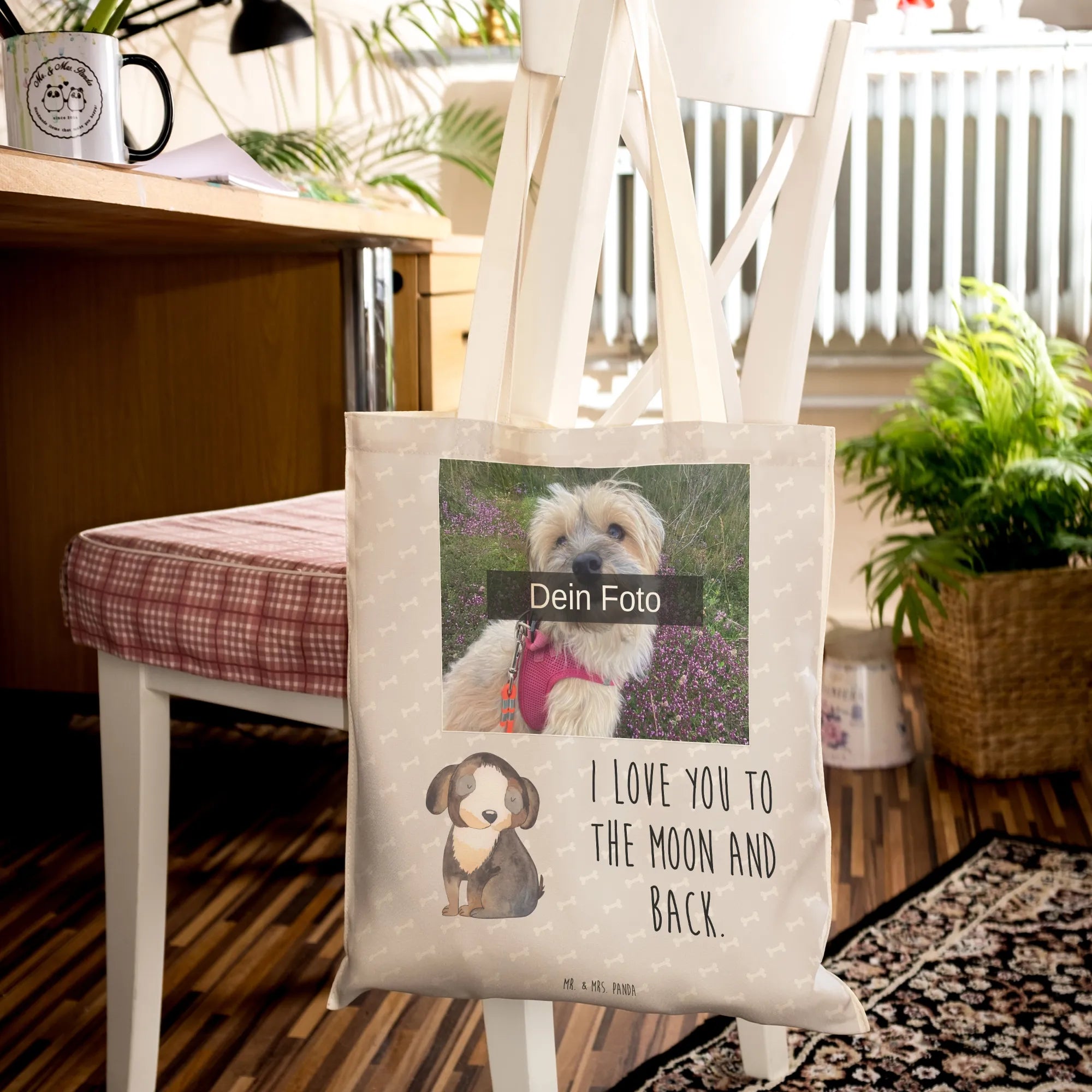Personalisierte Foto Einkaufstasche Hund Entspannen - Grau Pastell