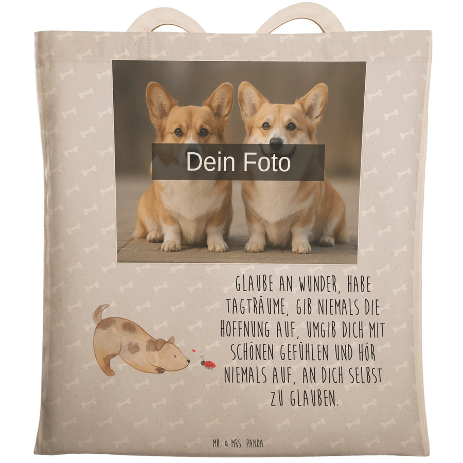 Personalisierte Foto Einkaufstasche Hund Marienkäfer - Grau Pastell