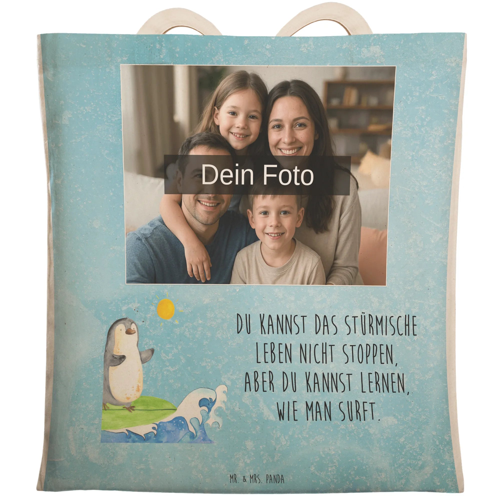 Personalisierte Foto Einkaufstasche Pinguin Surfer