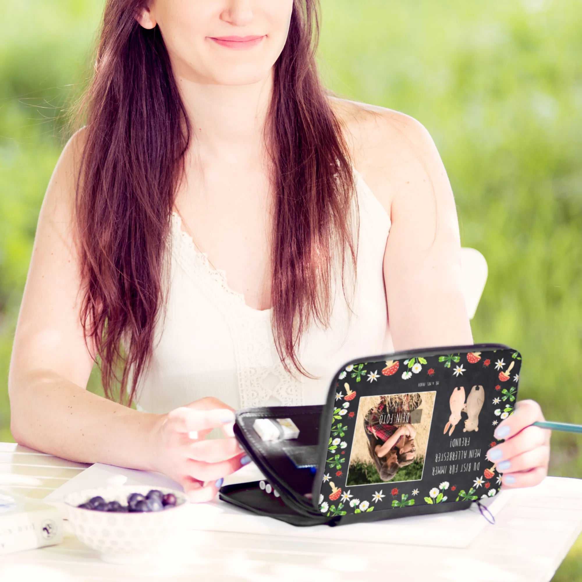 Stell dir vor, wie dein Freund oder deine Freundin ihre Stifte in dieser wunderbaren Federmappe verstauen. Ob für die Schule, das Büro oder als dekoratives Element im Bücherregal – die personalisierte Foto Federmappe bringt Freude in jeden Alltag. Du kannst sie ganz einfach mit deinem Wunschtext personalisieren, sodass sie ein ganz individuelles Geschenkerlebnis bietet.