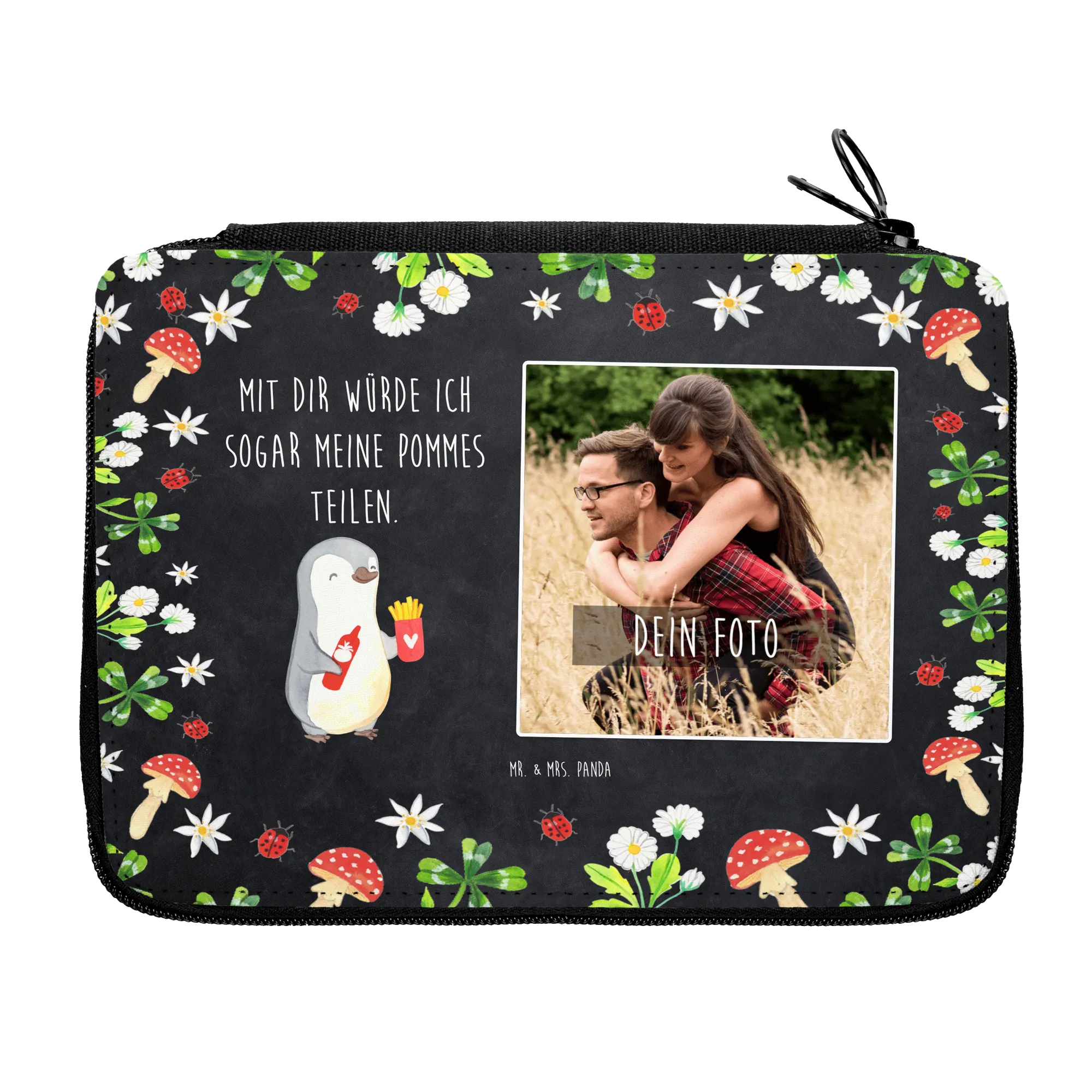 Die personalisierte Foto Federmappe mit dem fröhlichen Pinguin-Motiv "Pinguin Pommes" von Mr. & Mrs. Panda ist das perfekte Geschenk für all jene, die ihre Liebe auf eine charmante und liebevolle Weise zeigen möchten. Diese einzigartige Federmappe ist nicht nur funktional, sondern auch ein wahrer Hingucker! Mit der Möglichkeit, dein persönliches Foto hinzuzufügen und den lieben Namen oder einen Wunschtext zu drucken, wird jedes Exemplar zu einem ganz speziellen Unikat. Perfekt für besondere Anlässe wie Valentinstag, Hochzeitstag oder als kleines Liebesgeschenk zwischendurch, wird sie das Herz der Beschenkten höher schlagen lassen.
