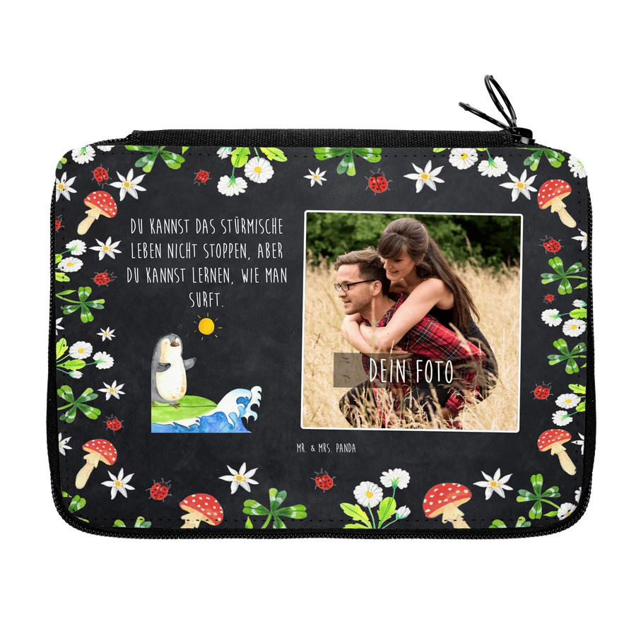 Diese personalisierte Foto Federmappe mit dem süßen Pinguin Surfer Motiv aus der Pinguin-Kollektion von Mr. & Mrs. Panda ist der perfekte Begleiter für alle kleinen Abenteurer! Ob in der Schule oder beim Ausflug in den Park, die Federmappe bringt nicht nur gute Laune, sondern auch eine Portion Surf-Feeling mit sich.