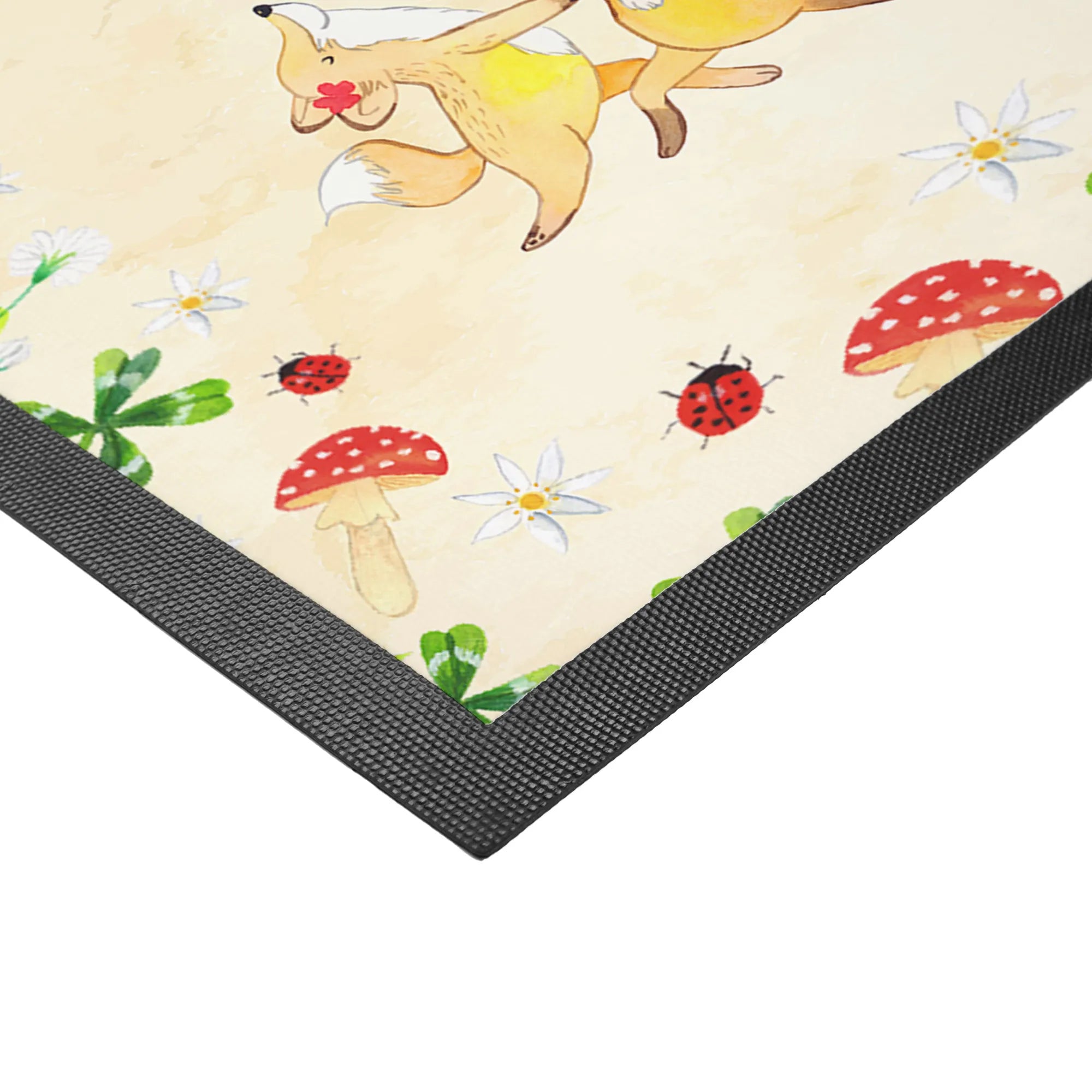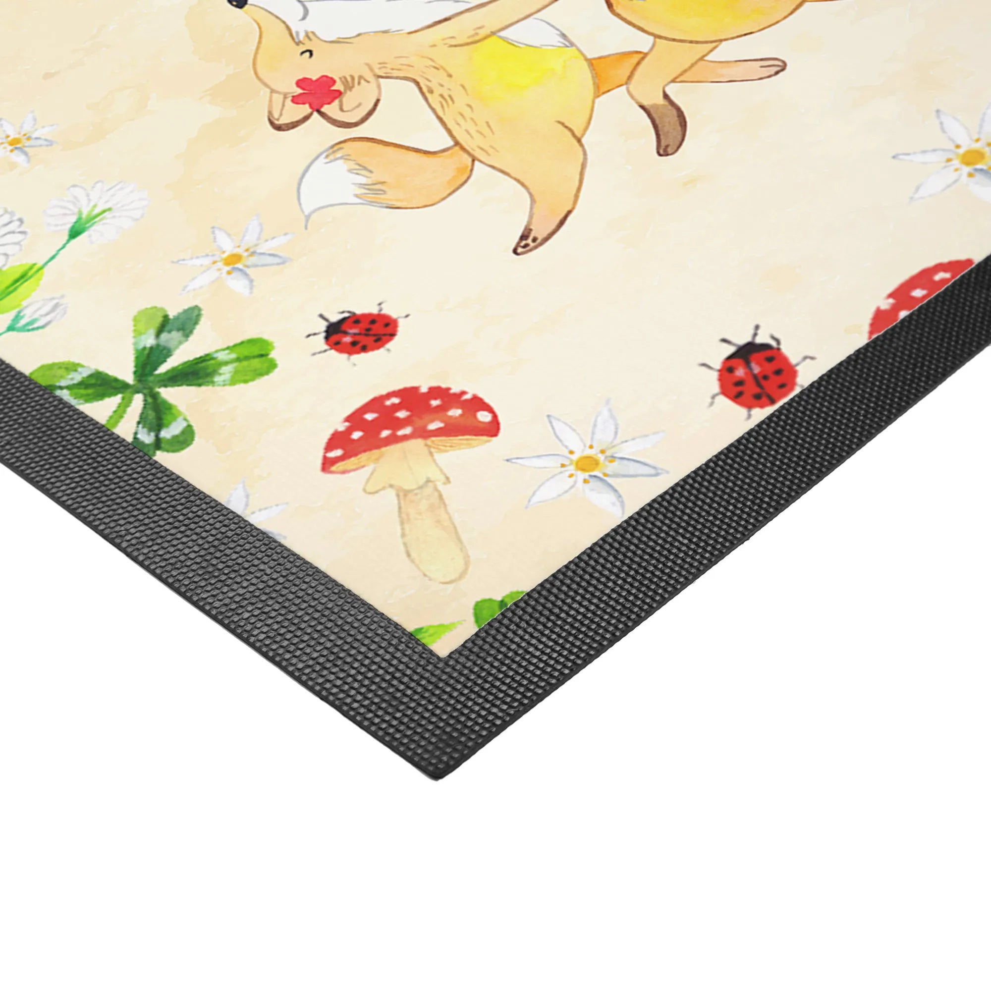 Mit diesem einzigartigen Motiv, das ein liebevolles Fuchs-Liebespaar zeigt, bringst du Freude und Wärme in jedes Zuhause. Diese Fußmatte ist nicht nur ein dekoratives Element, sondern auch ein funktionales Produkt, das den Eingangsbereich verschönert und gleichzeitig Schmutz abfängt. Die hohe Qualität des robusten Polyesterfilzes und die gummierte Rückseite sorgen dafür, dass die Matte rutschfest auf dem Boden liegt und eine lange Lebensdauer hat.