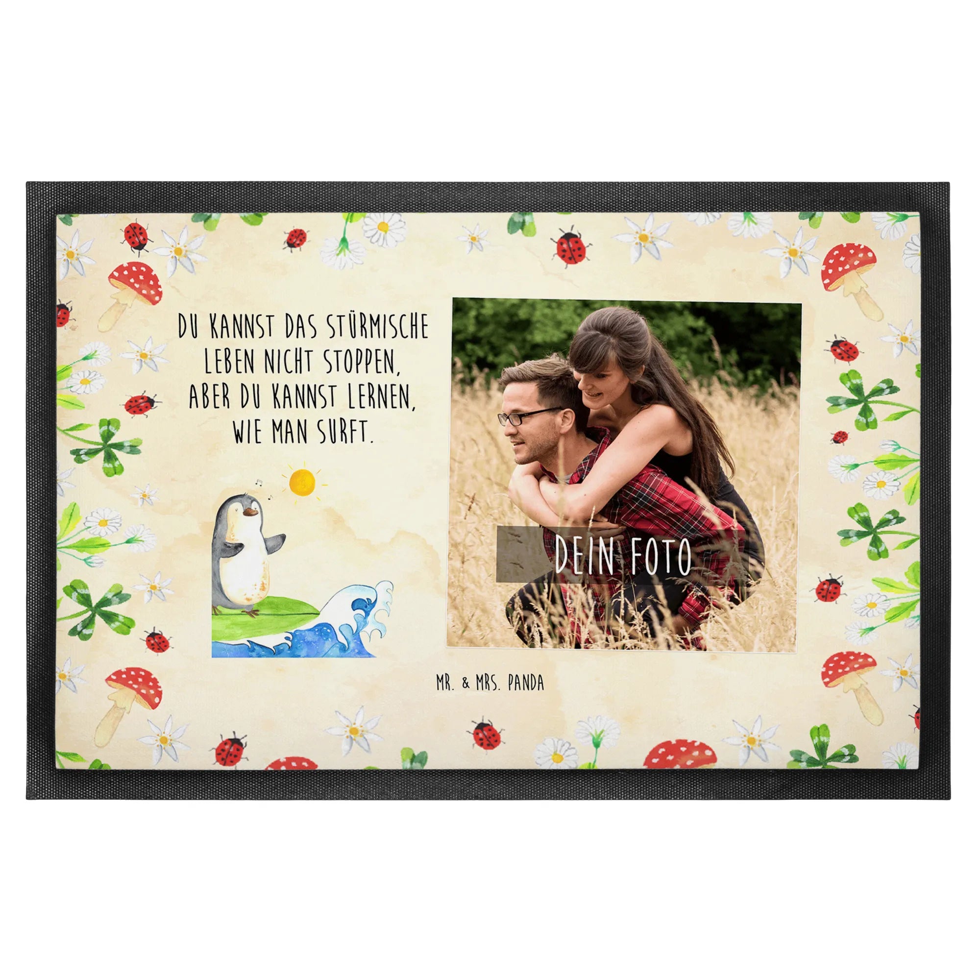 Entdecke die perfekte Kombination von Funktionalität und einem Hauch von Persönlichkeit mit unserer personalisierte Foto Fußmatte im süßen Pinguin Surfer Design aus der exklusiven Pinguin-Kollektion von Mr. & Mrs. Panda!