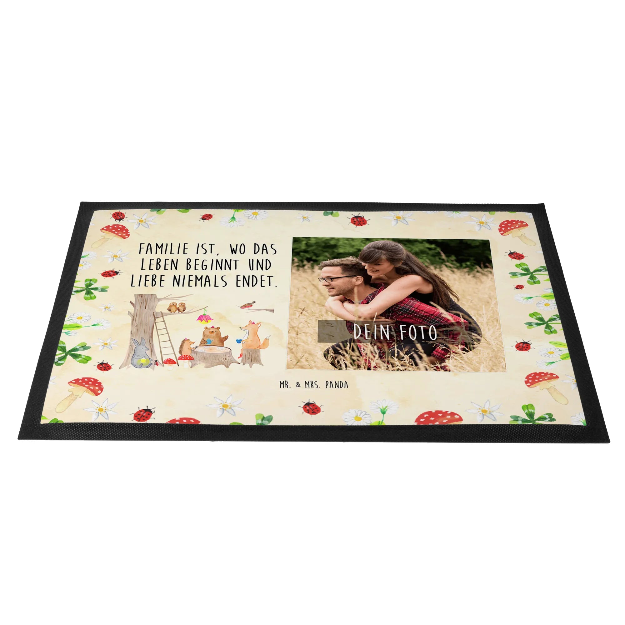 Entdecke die zauberhafte, personalisierte Foto Fußmatte mit dem Motiv "Waldtiere Picknick" aus der beliebten Kollektion Small World von Mr. & Mrs. Panda!