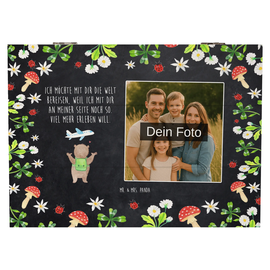 Die personalisierte Foto Holzkiste mit dem süßen Motiv 'Bär Flugzeug' von Mr. & Mrs. Panda ist das perfekte Geschenk für alle, die ihre Liebe auf besondere Weise zeigen möchten. Diese wunderschöne Kiste ist nicht nur als Aufbewahrungsort für kostbare Erinnerungen geeignet, sondern auch ein liebevolles Liebesgeschenk zum Valentinstag, Jahrestag oder Hochzeitstag.