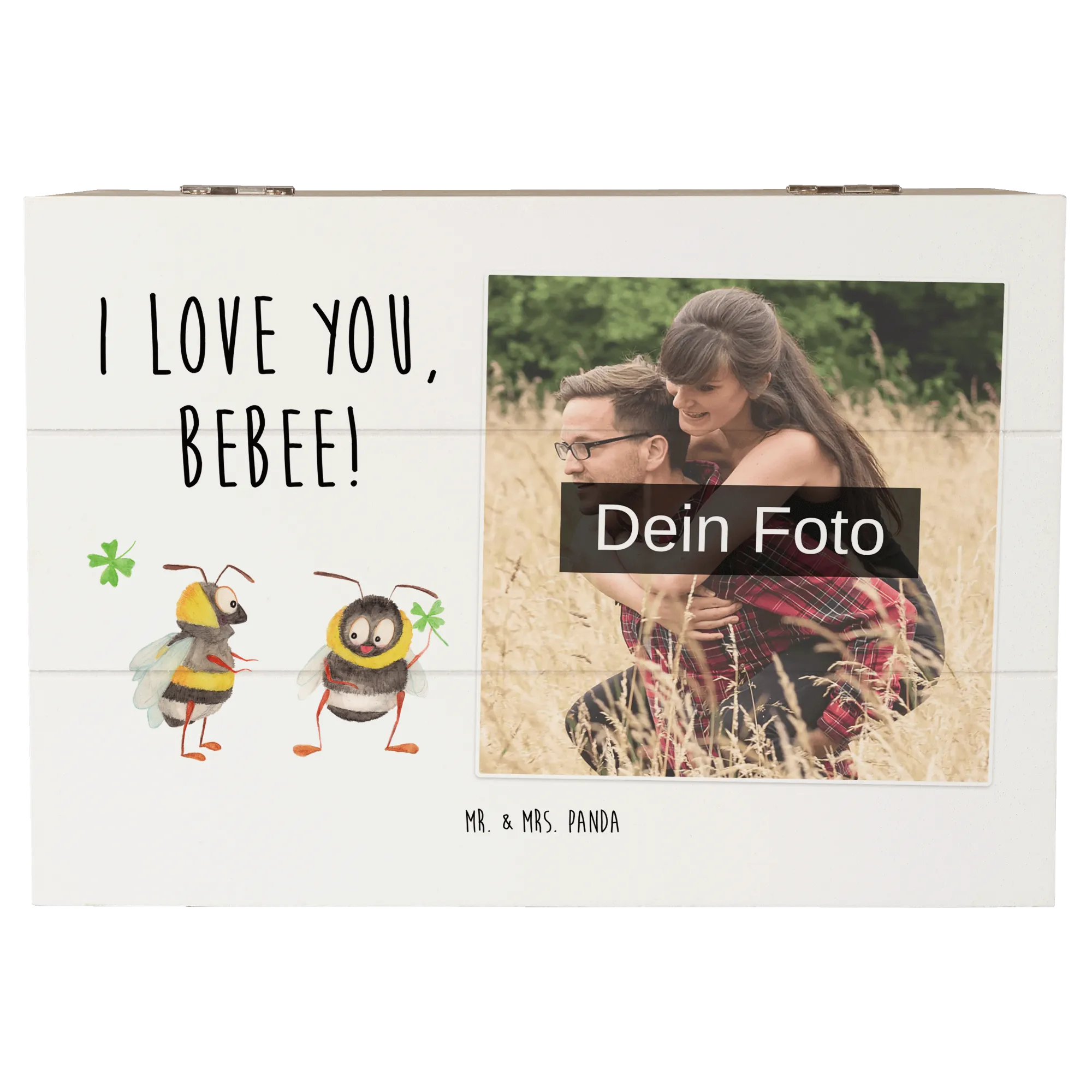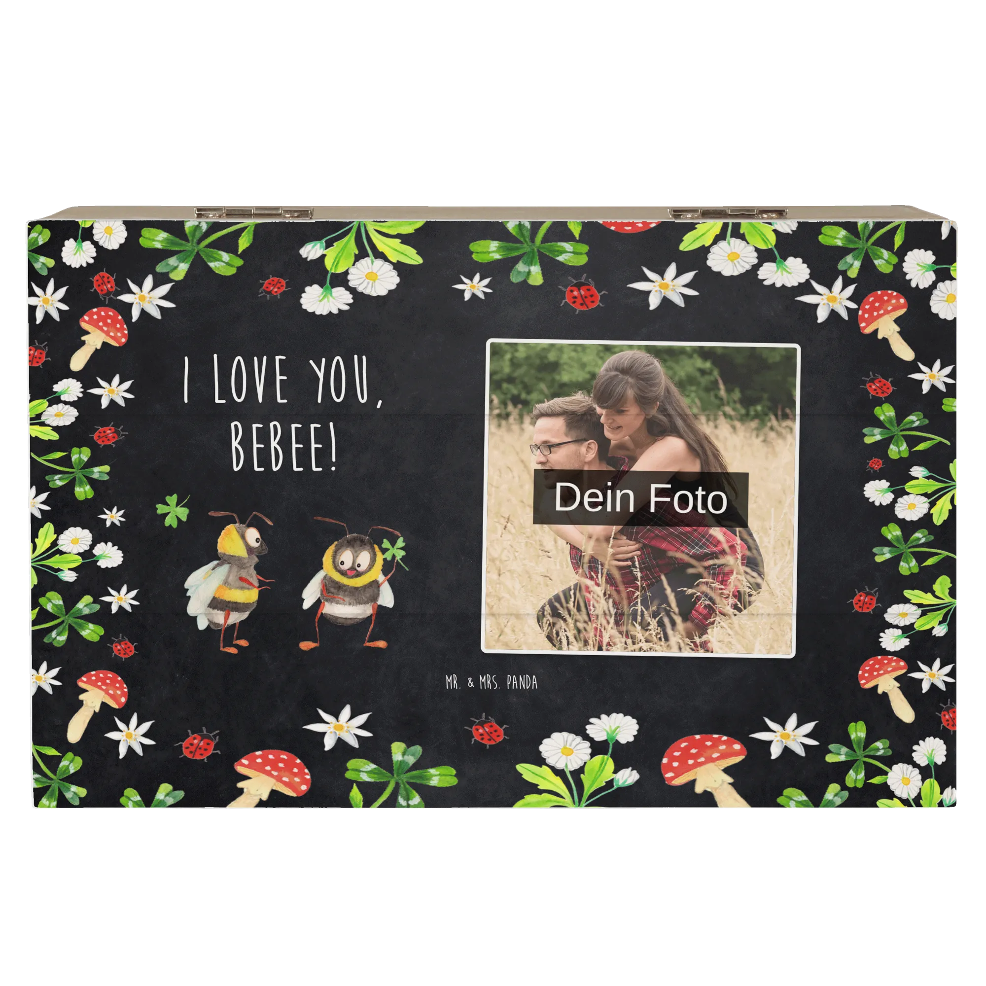 Bist du auf der Suche nach einem ganz besonderen Geschenk für deine Liebsten? Dann ist die personalisiertes Foto Holzkiste mit dem zauberhaften Motiv "Bienen Paar" von Mr. & Mrs. Panda genau das Richtige für dich!