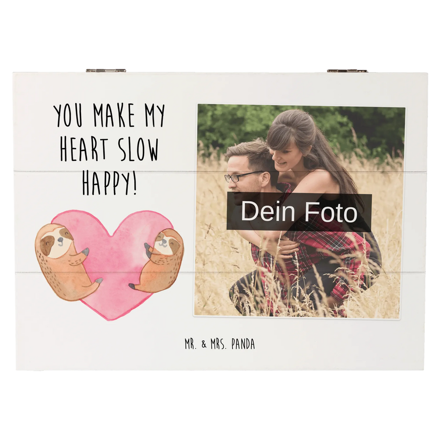 Die personalisierten Foto Holzkiste Faultiere Herz von Mr. & Mrs. Panda ist das perfekte Geschenk für jeden besonderen Anlass. Diese hochwertige Holzkiste bietet nicht nur eine wunderschöne Aufbewahrung für wertvolle Erinnerungen, sondern ist auch individuell anpassbar mit deinem persönlichen Foto und einem Wunschtext.