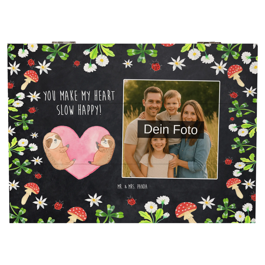 Personalisierte Foto Holzkiste Faultiere Herz - 25 x 18 cm - Kreidetafel