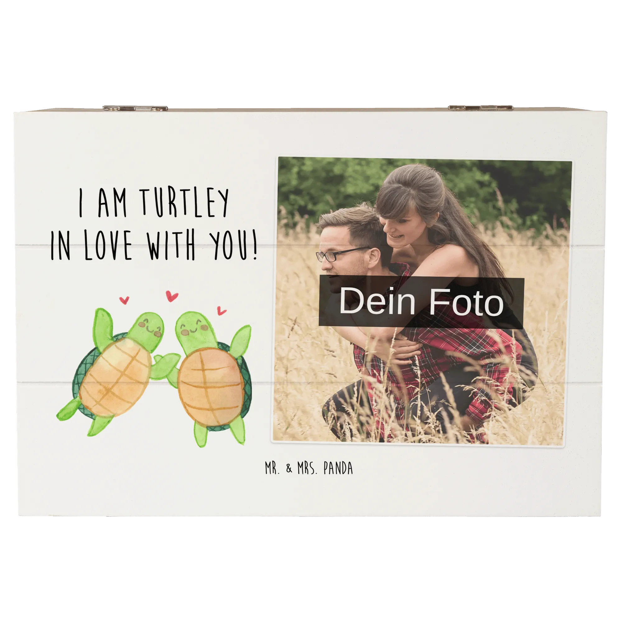 Verschenke ein Stück Liebe – mit der personalisierten Foto Holzkiste Schildkröten Paar von Mr. & Mrs. Panda. Eine kleine, große Geste für Menschen, die dir viel bedeuten.