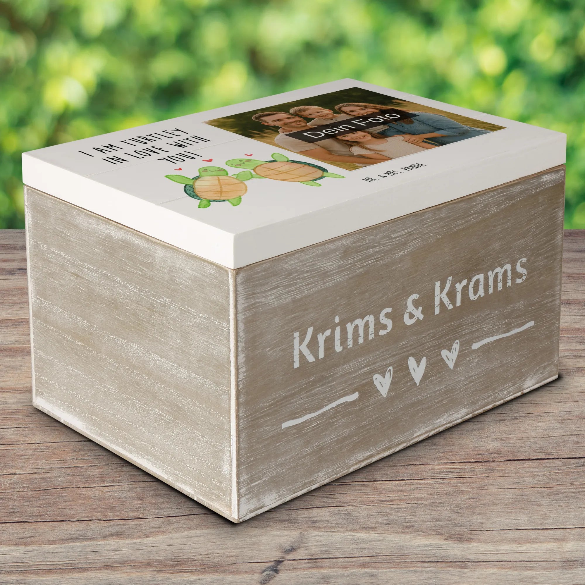 Die personalisierte Foto Holzkiste mit dem süßen Motiv der Schildkröten ist das perfekte Geschenk für all jene, die ihre Liebe auf eine ganz besondere Weise zeigen möchten. Ob zum Valentinstag, zum Jahrestag oder einfach als liebevolles Mitbringsel – diese Holzkiste ist für jeden Anlass ideal, um wertvolle Erinnerungen aufzubewahren.
