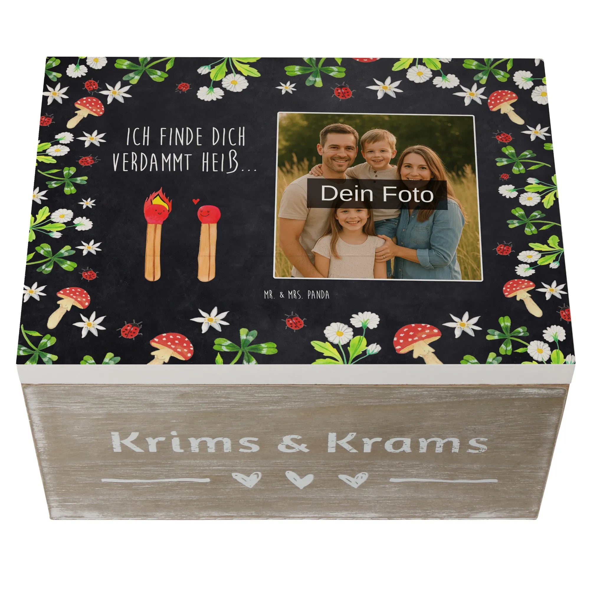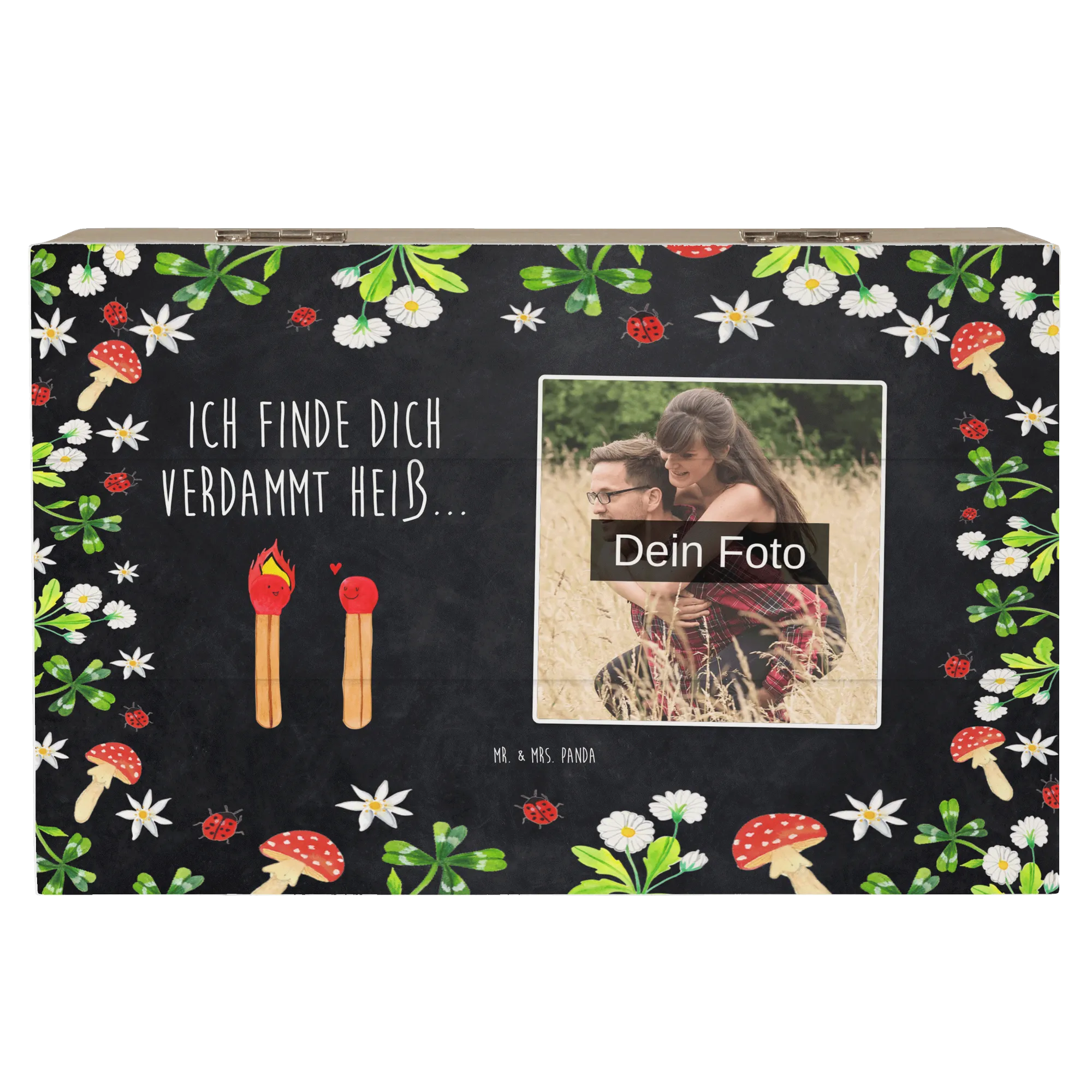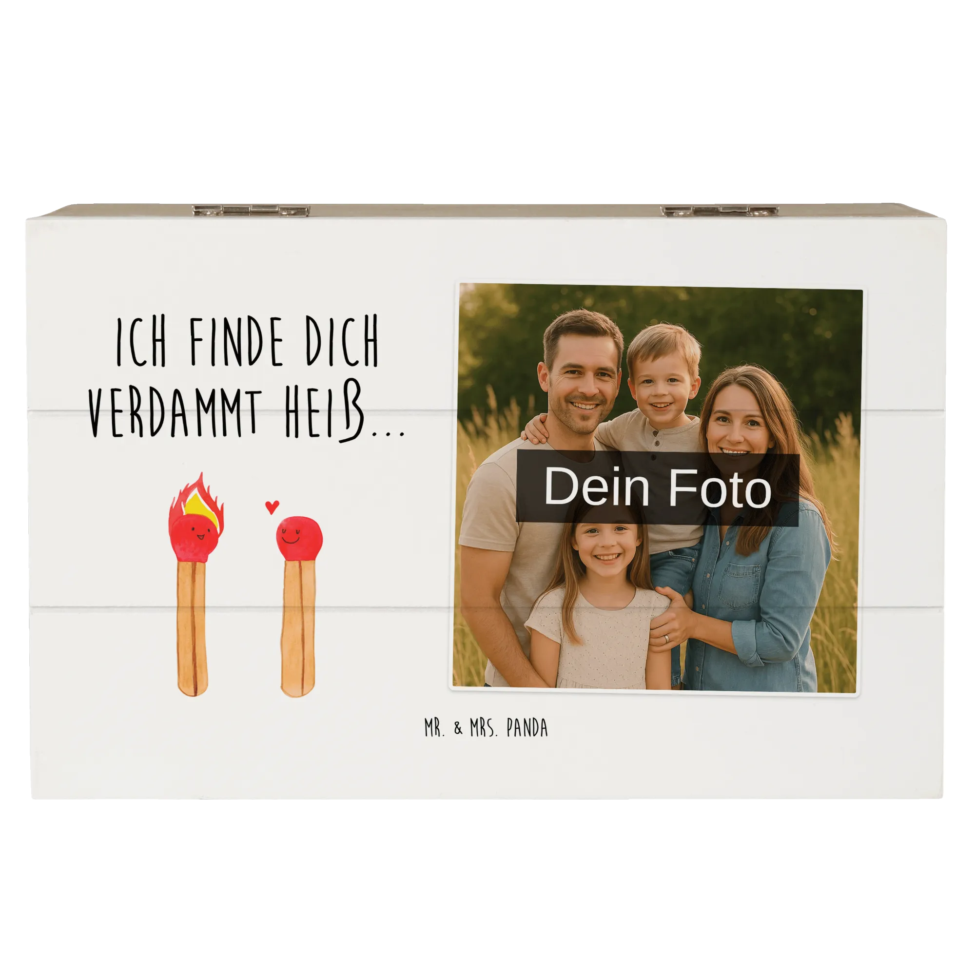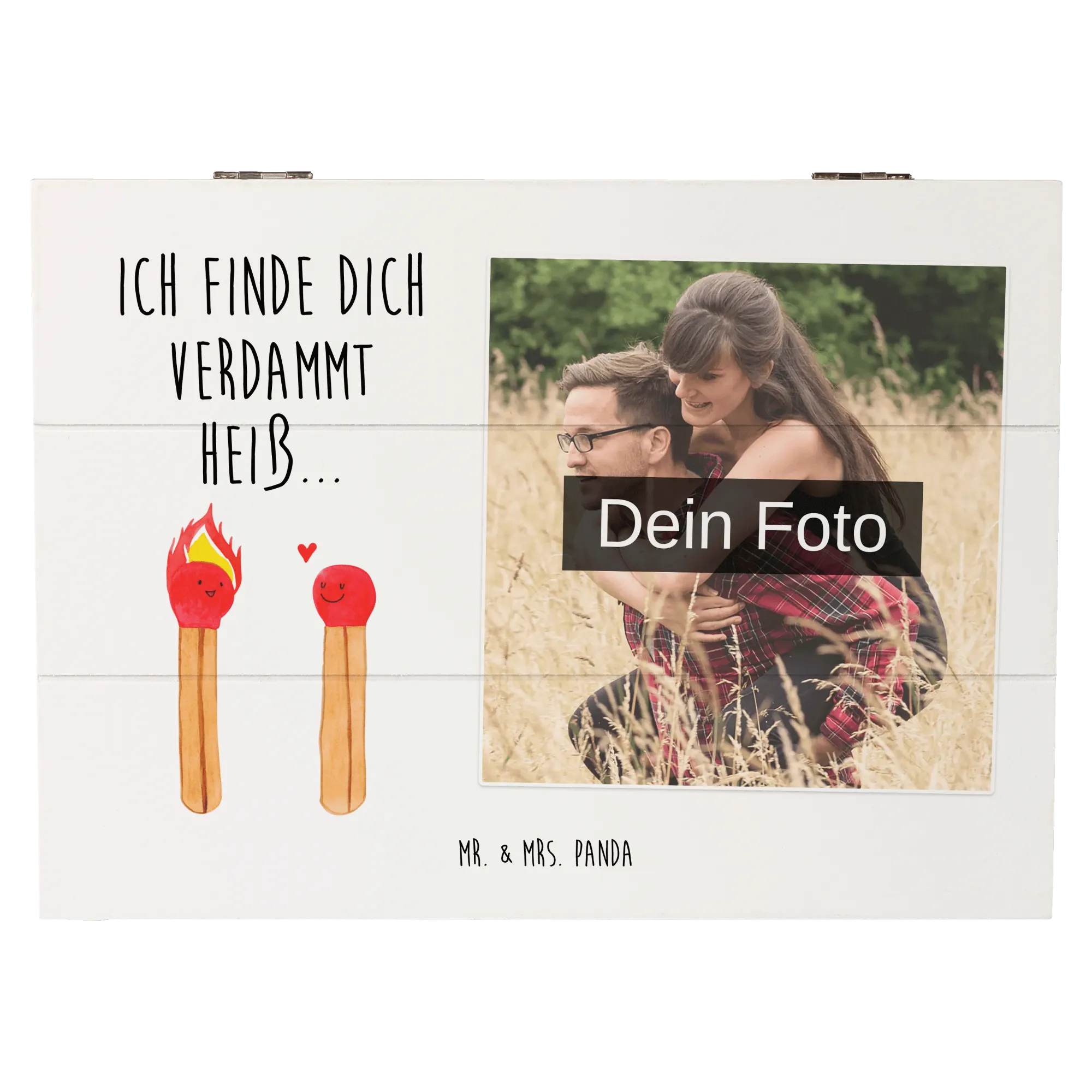 Die personalisierte Foto Holzkiste mit dem süßen Motiv der Streichhölzer von Mr. & Mrs. Panda ist das perfekte Geschenk für alle, die ihre Liebe gebührend feiern möchten. Ob zum Jahrestag, zur Verlobung oder einfach nur, um dem Partner eine Freude zu machen - diese liebevoll gestaltete Kiste wird garantiert das Herz deines Lieblings erwärmen.