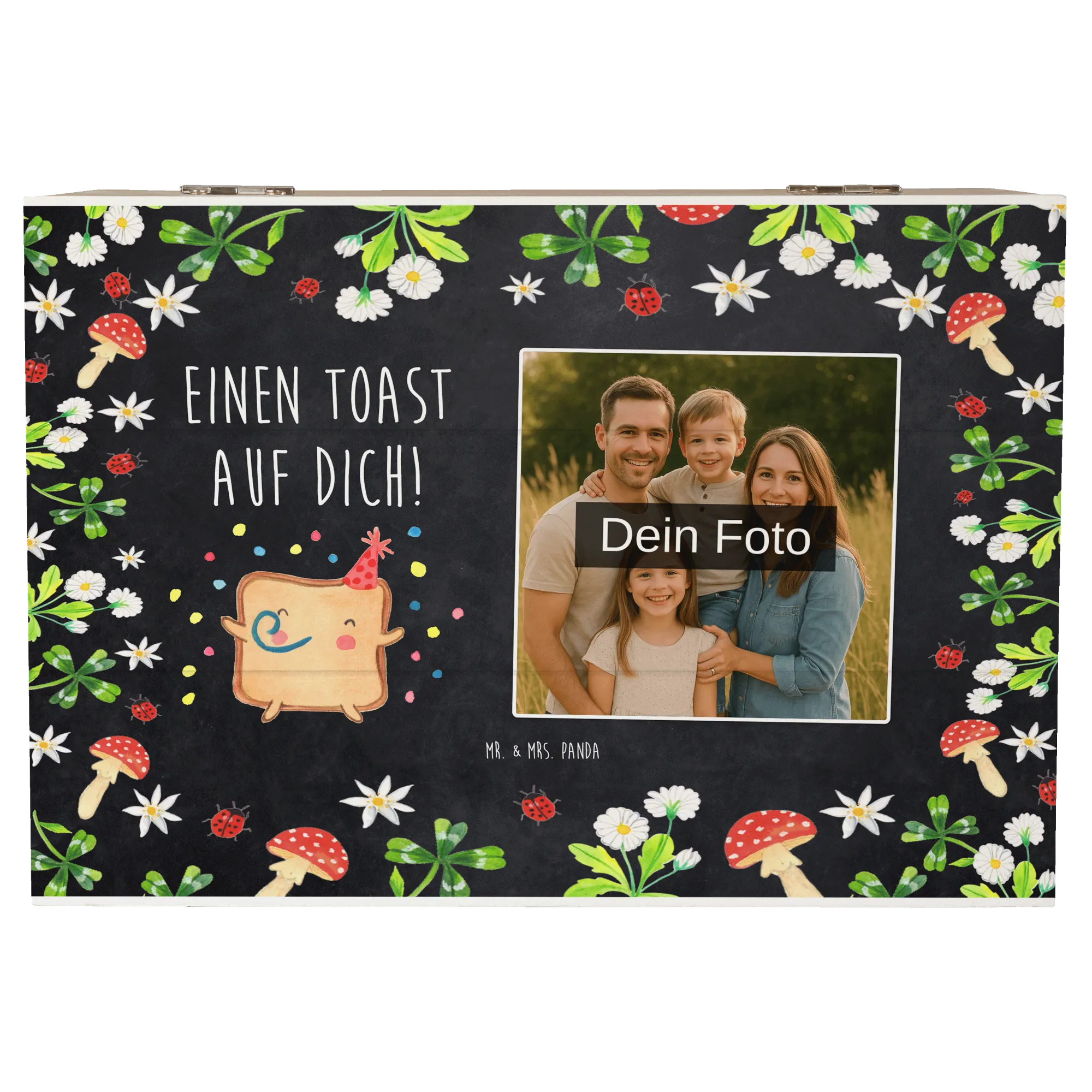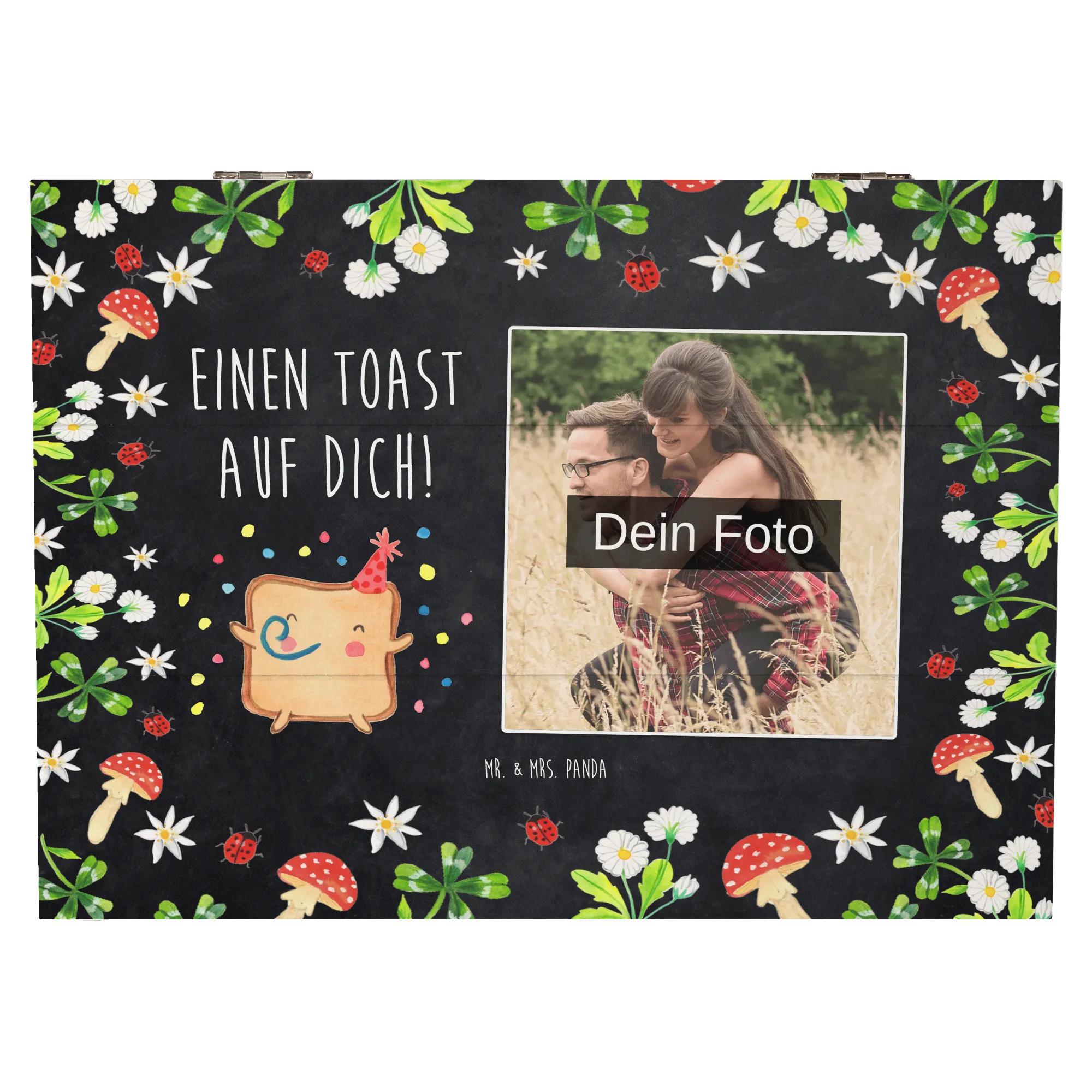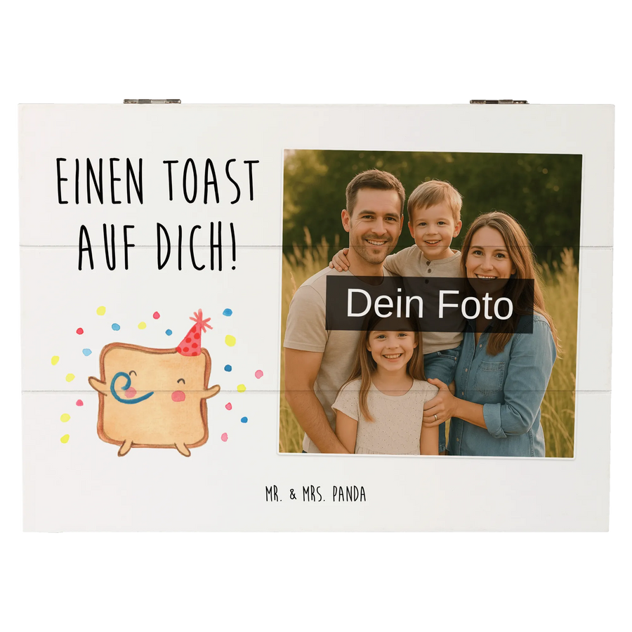 Die personalisierte Foto Holzkiste "Toast Party" von Mr. & Mrs. Panda ist das perfekte Geschenk für alle, die Liebe und Emotionen auf eine besondere Weise zeigen möchten.