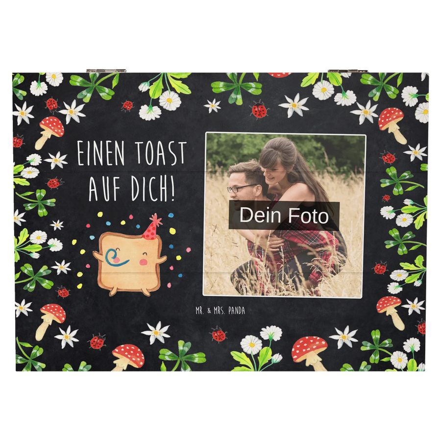 Die personalisierte Foto Holzkiste "Toast Party" von Mr. & Mrs. Panda ist das perfekte Geschenk für all jene, die die Liebe zelebrieren möchten. Egal ob zum Valentinstag, Jahrestag oder Hochzeitstag – diese wunderschöne Holzkiste ist ein einzigartiges Liebesgeschenk, das von Herzen kommt. Mit dem zauberhaften Motiv eines lächelnden Toasts, der einen Partyhut trägt, und dem liebevollen Slogan "Einen Toast auf dich!" bringt sie Freude und Liebe in jedes Zuhause.