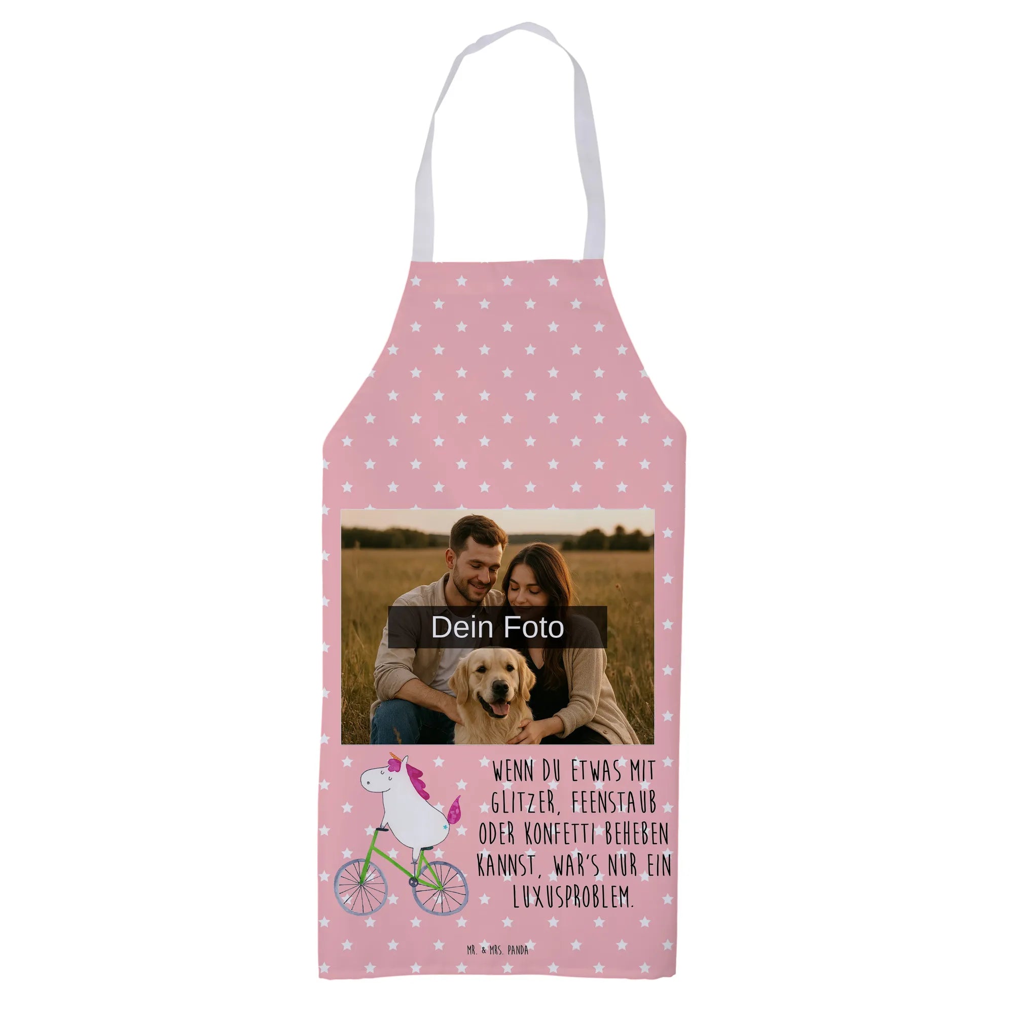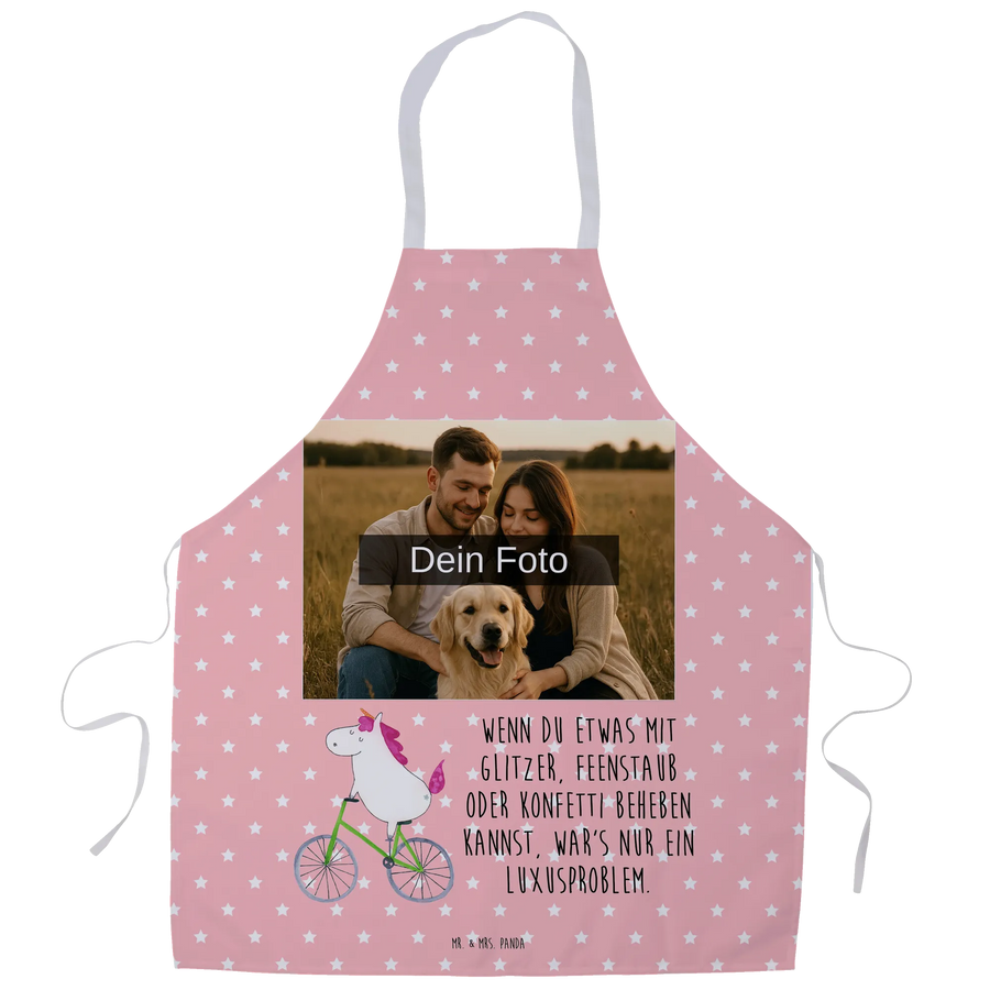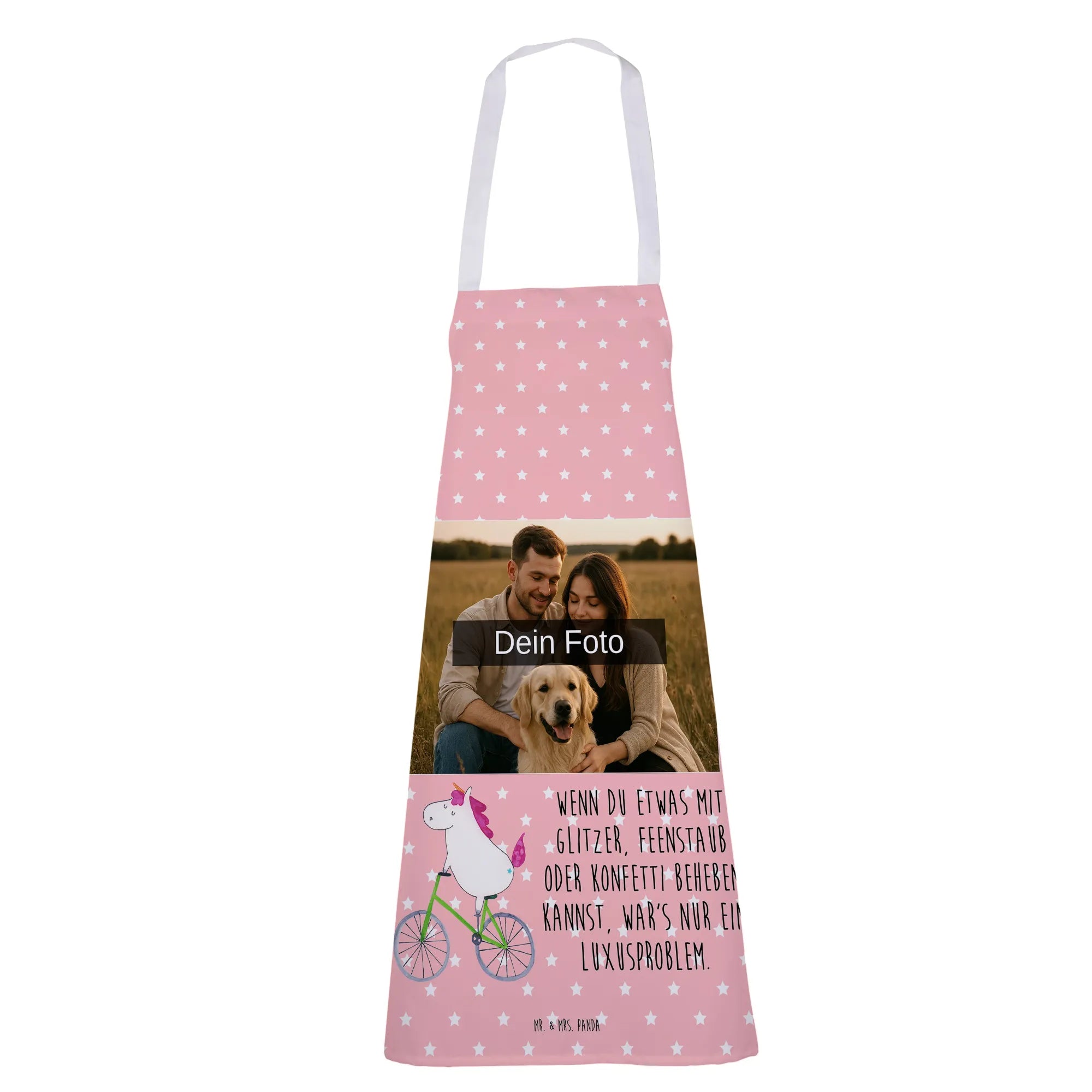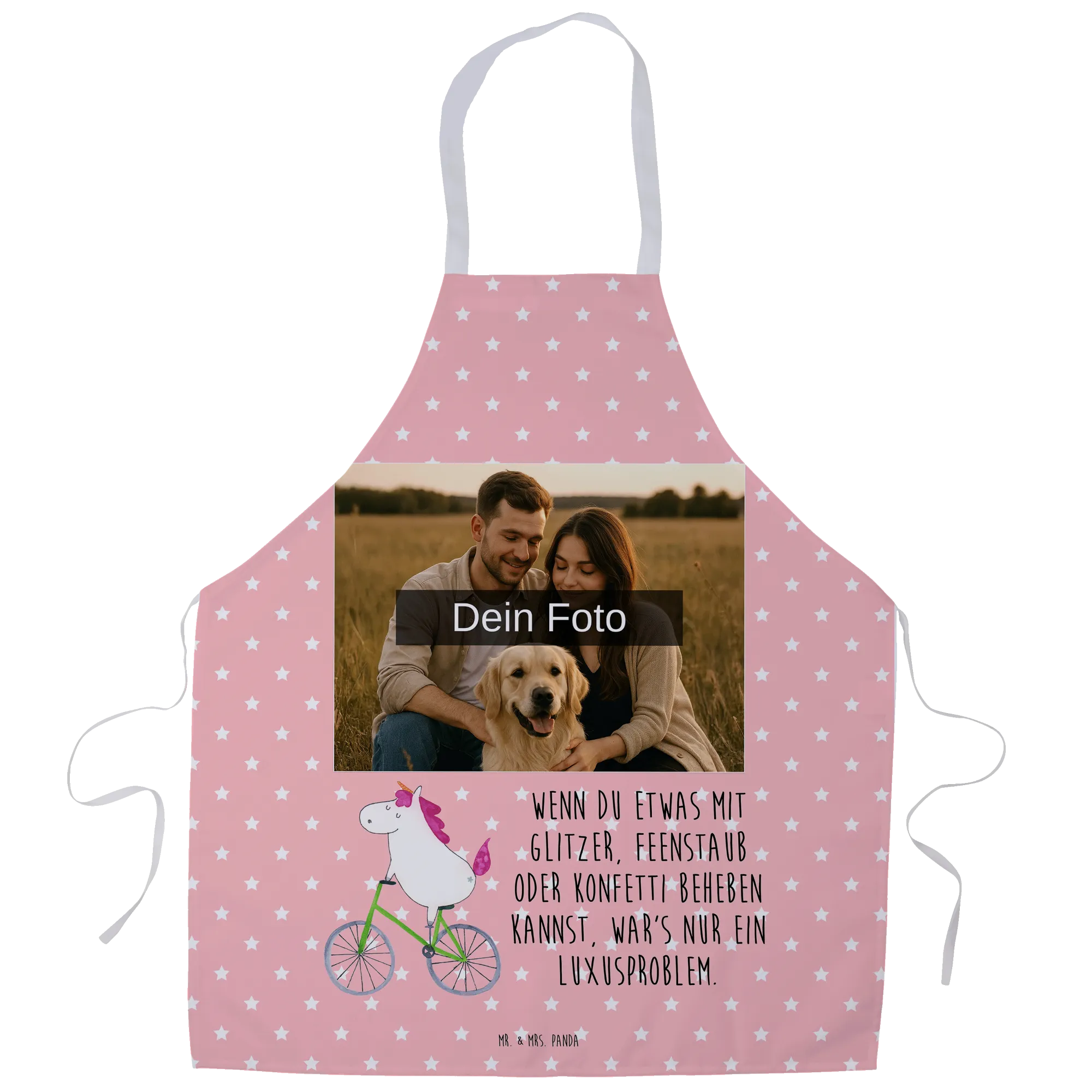 Personalisierte Foto Kochschürze Einhorn Radfahrer