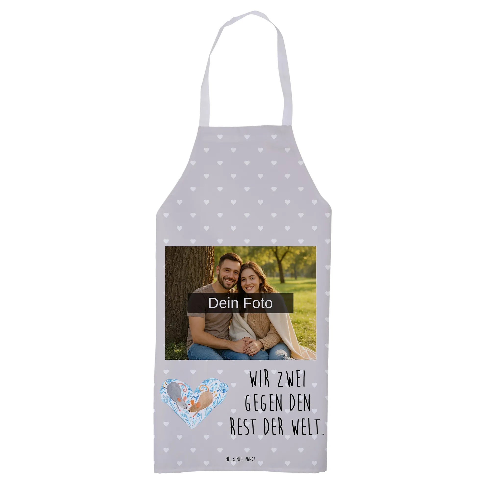 Entdecke die wunderschöne personalisierte Foto Kochschürze von Mr. & Mrs. Panda! Diese Schürze ist nicht nur praktisch, sondern auch ein echter Hingucker in deiner Küche. Hergestellt aus hochwertiger Premium Kunstfaser, misst sie 950 mm x 700 mm und hat zusätzlich eine 950 mm lange Nackenschlaufe. Sie ist mit süßen Motiven und Sprüchen bedruckt, die dein Kochen zu einem Erlebnis machen. Du kannst sie mit deinem ganz persönlichen Wunschfoto individuell gestalten. Achte darauf, dass das hochgeladene Bild in hoher Auflösung vorliegt, damit das Druckergebnis klar und wunderschön ist. Stelle sicher, dass der Bildausschnitt gut gewählt ist, damit alle wichtigen Details sichtbar bleiben. Wenn Personen auf dem Foto zu sehen sind, lade nur Bilder hoch, bei denen du die Rechte besitzt. Die Schürze verfügt über stabile Nackenschlaufen und Seitenbänder, um den perfekten Sitz zu gewährleisten. Sie ist samtweich, atmungsaktiv und hat eine praktische große Fronttasche. Nach dem Kochen kannst du sie einfach bei 30°C in der Maschine waschen. Verwöhne dich oder deine liebsten Menschen mit einem persönlich gestalteten Geschenk, das sowohl praktisch als auch einzigartig ist!