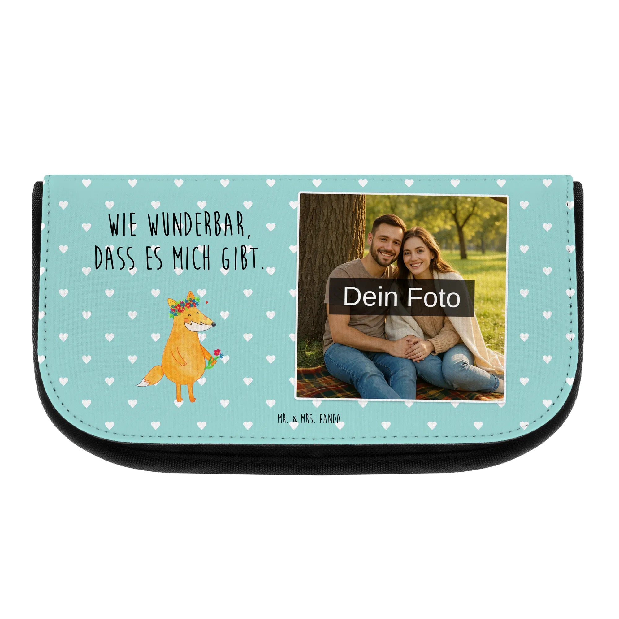 Personalisierte Foto Kosmetiktasche Fuchs Blumen – Mr. & Mrs. Panda
