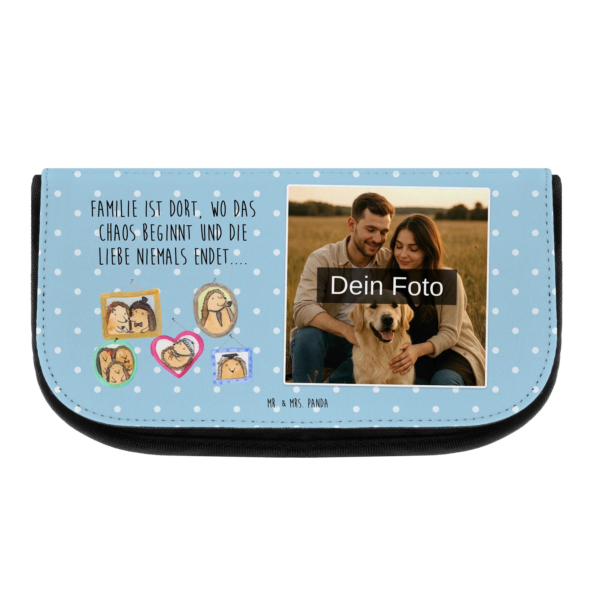 Personalisierte Foto Kosmetiktasche Igel Familie - Blau Pastell