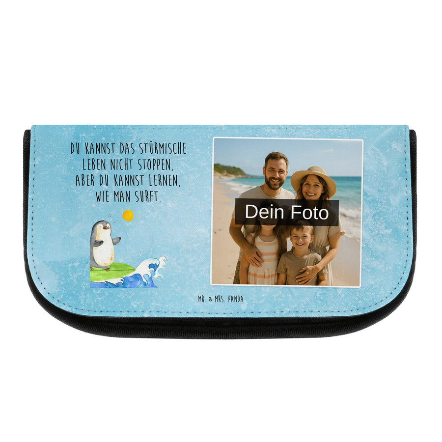 Personalisierte Foto Kosmetiktasche Pinguin Surfer