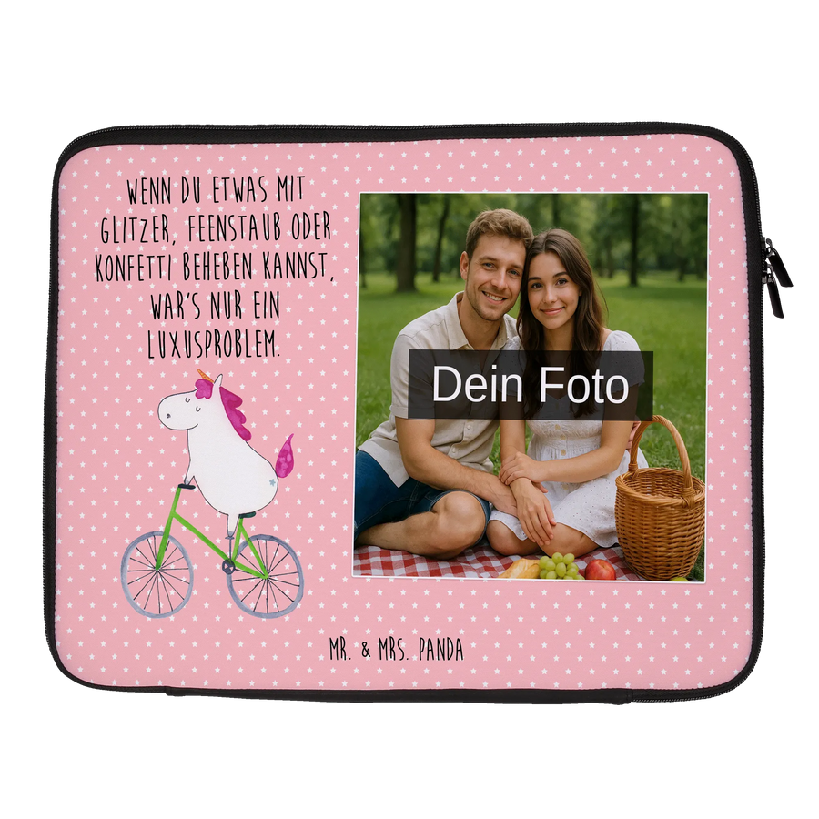Personalisierte Foto Notebook Tasche Einhorn Radfahrer - 20 x 28 cm