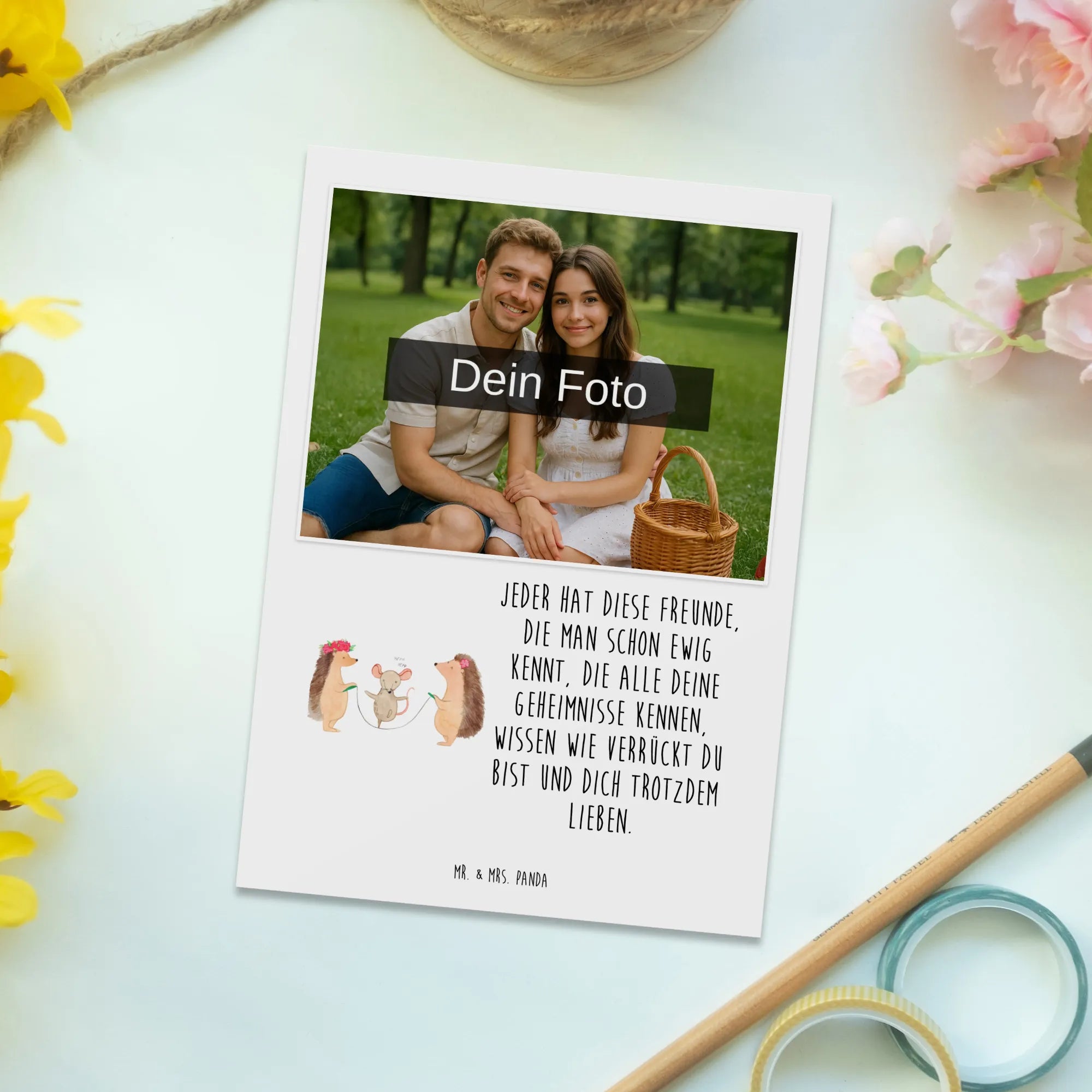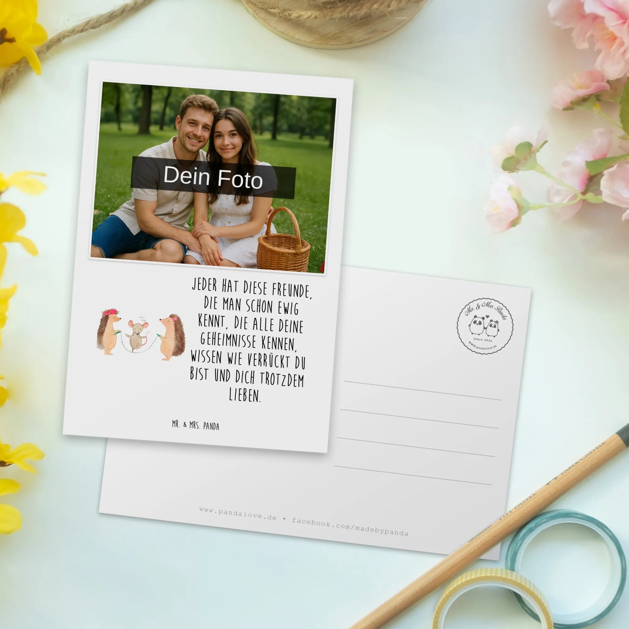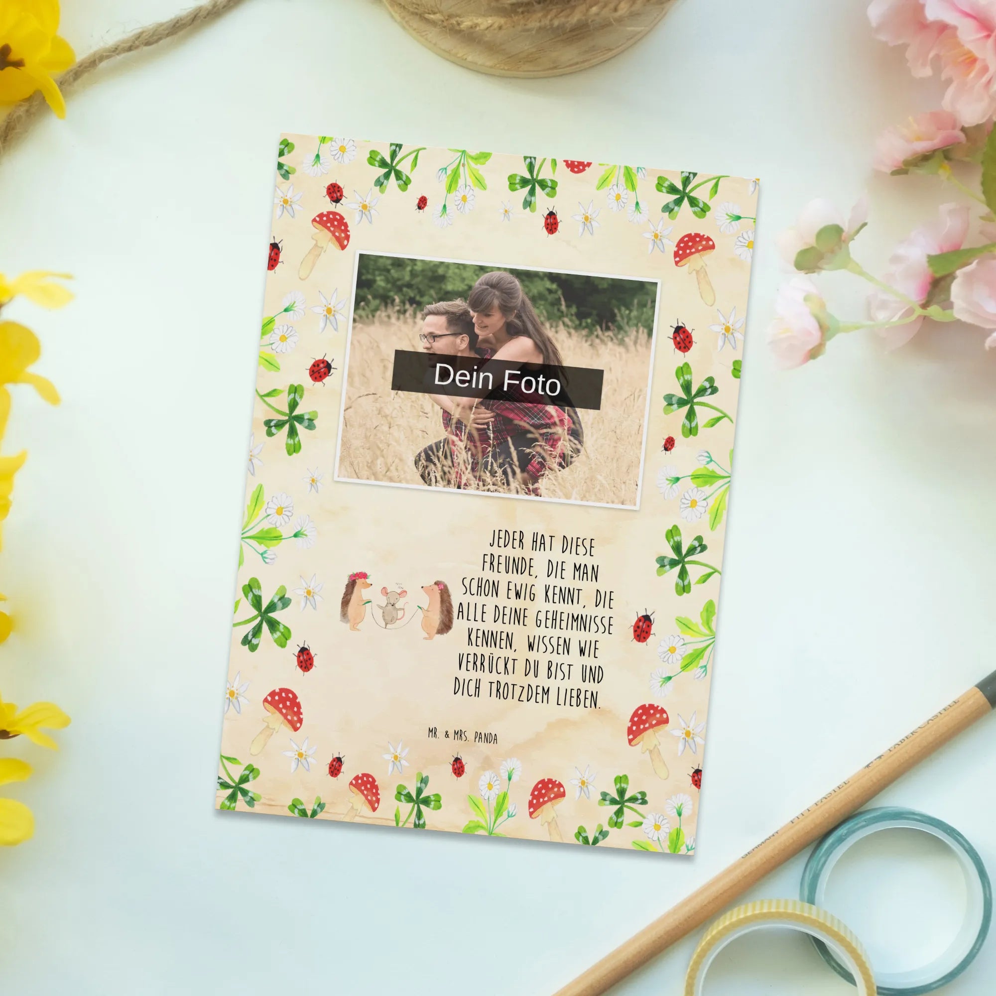 Überrasche jemanden mit einer personalisierten Foto Postkarte von Mr. & Mrs. Panda! Diese besondere Postkarte ist mit süßen Designs und humorvollen Sprüchen geschmückt, die sie zu einem perfekten Geschenk machen. Du kannst die Postkarte mit deinem eigenen Wunschtext oder Namen anpassen und hast auch die Möglichkeit, ein persönliches Foto hochzuladen. Achte darauf, dass dein Foto eine hohe Auflösung hat, damit der Druck perfekt aussieht. Die Postkarte hat die Maße von 150 mm x 1 mm und ist aus hochwertigem Karton, der sowohl langlebig als auch ansprechend ist. Der glänzende Druck auf der Vorderseite zieht Blicke an, während die matte Rückseite zum Schreiben von persönlichen Worten einlädt. perfekt für Anlässe wie Geburtstage, Hochzeiten oder Taufen – verschenke eine einzigartige Karte, die Gefühle ausdrückt und in Erinnerung bleibt!