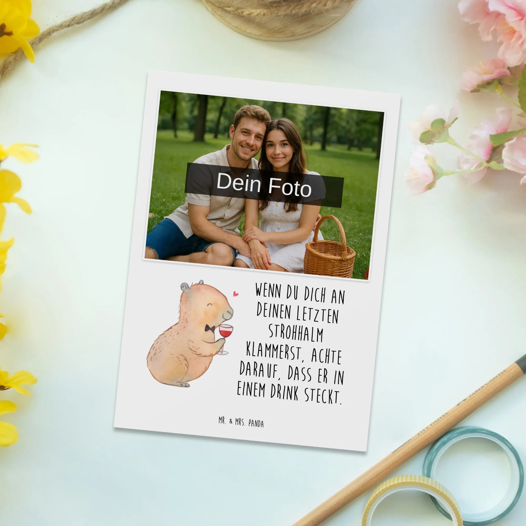 Personalisierte Foto Postkarte Capybara Wein