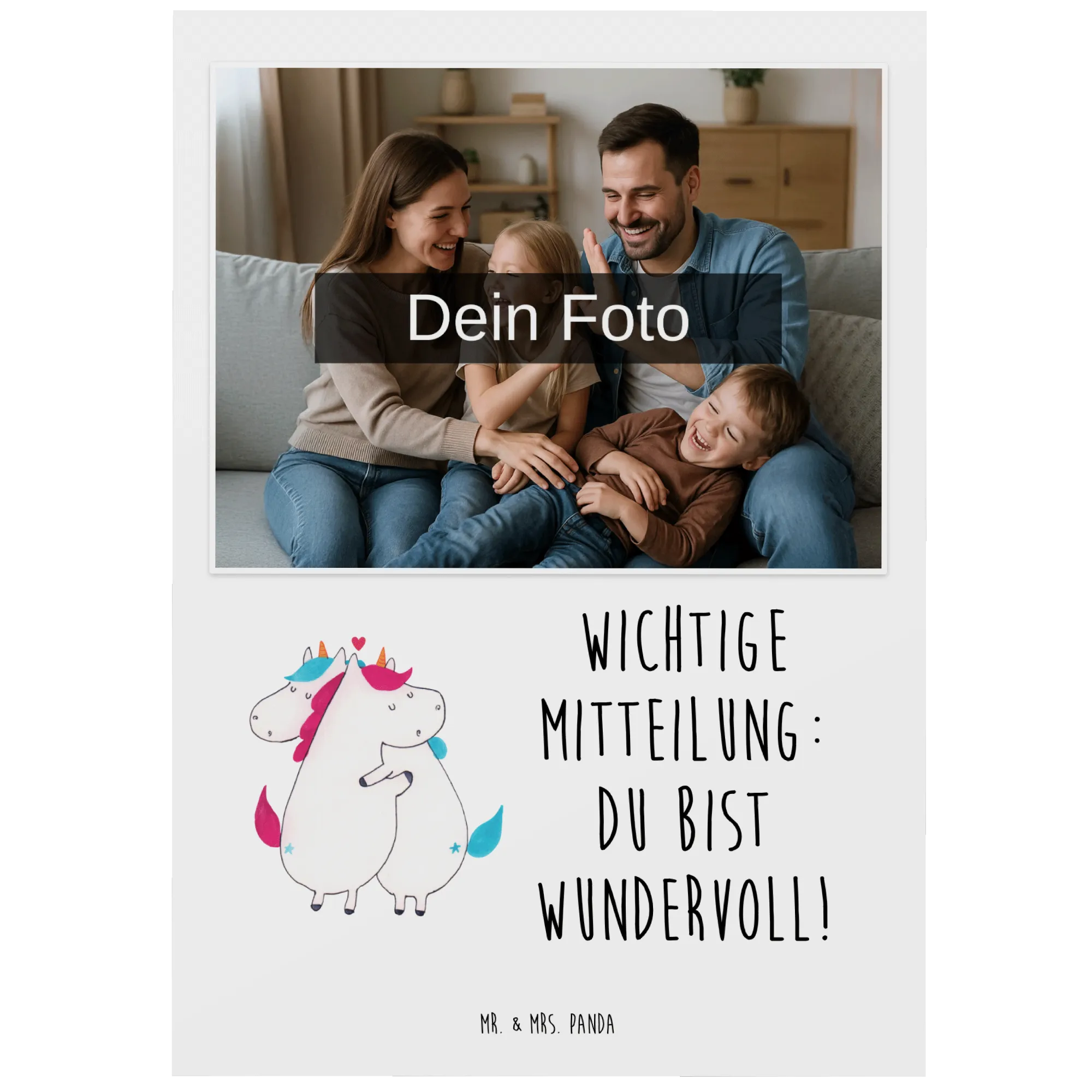 Mach jeden Anlass besonders mit unserer personalisierten Foto Postkarte von Mr. & Mrs. Panda – jetzt gestalten und Freude verbreiten!