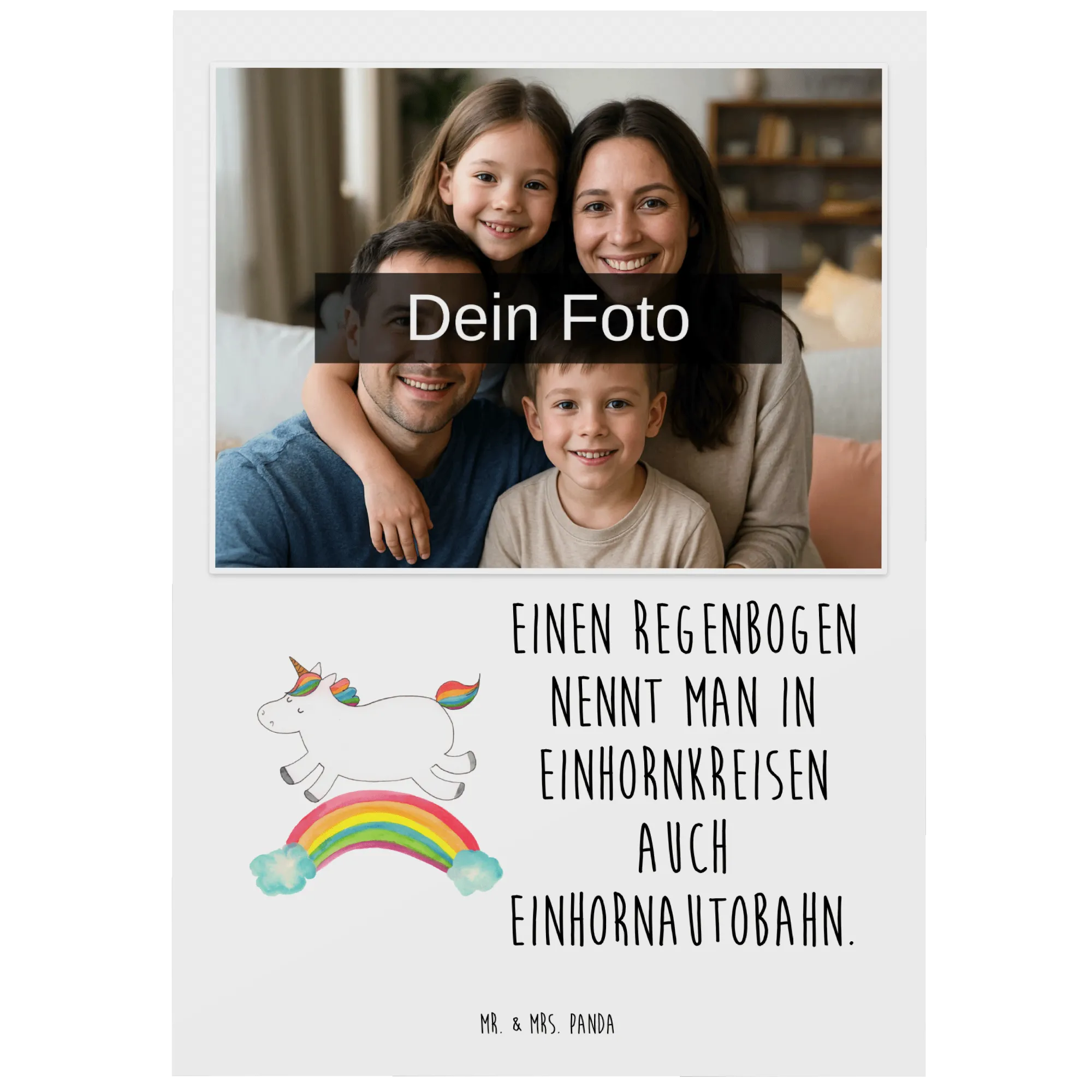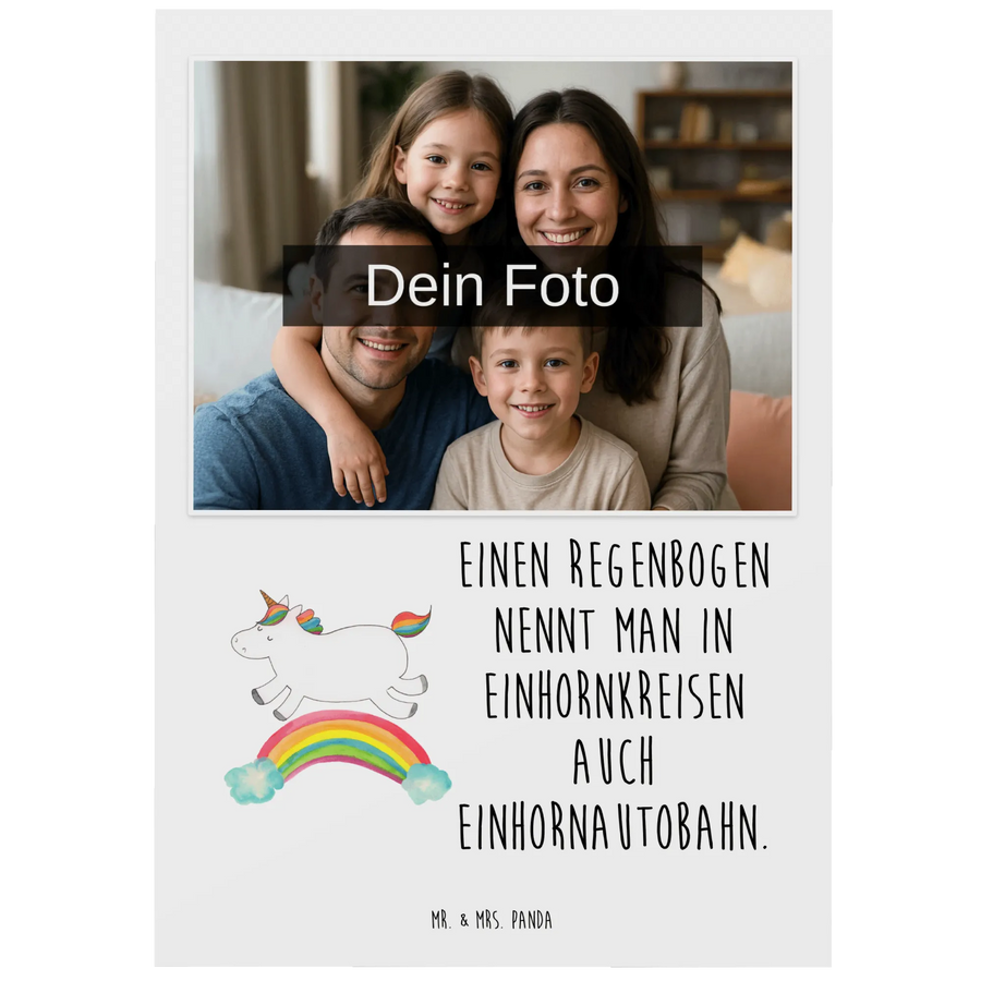Die personalisierte Foto Postkarte mit dem zauberhaften Einhorn Regenbogen Motiv aus der Einhorn-Kollektion von Mr. & Mrs. Panda ist das perfekte Geschenk für Einhorn-Liebhaber und Freunde der bunten Fantasiewelt. Egal, ob zum Geburtstag, zur Hochzeit oder als liebevolle Aufmerksamkeit zu einem besonderen Anlass – diese Postkarte bringt zauberhafte Freude in den Alltag!
