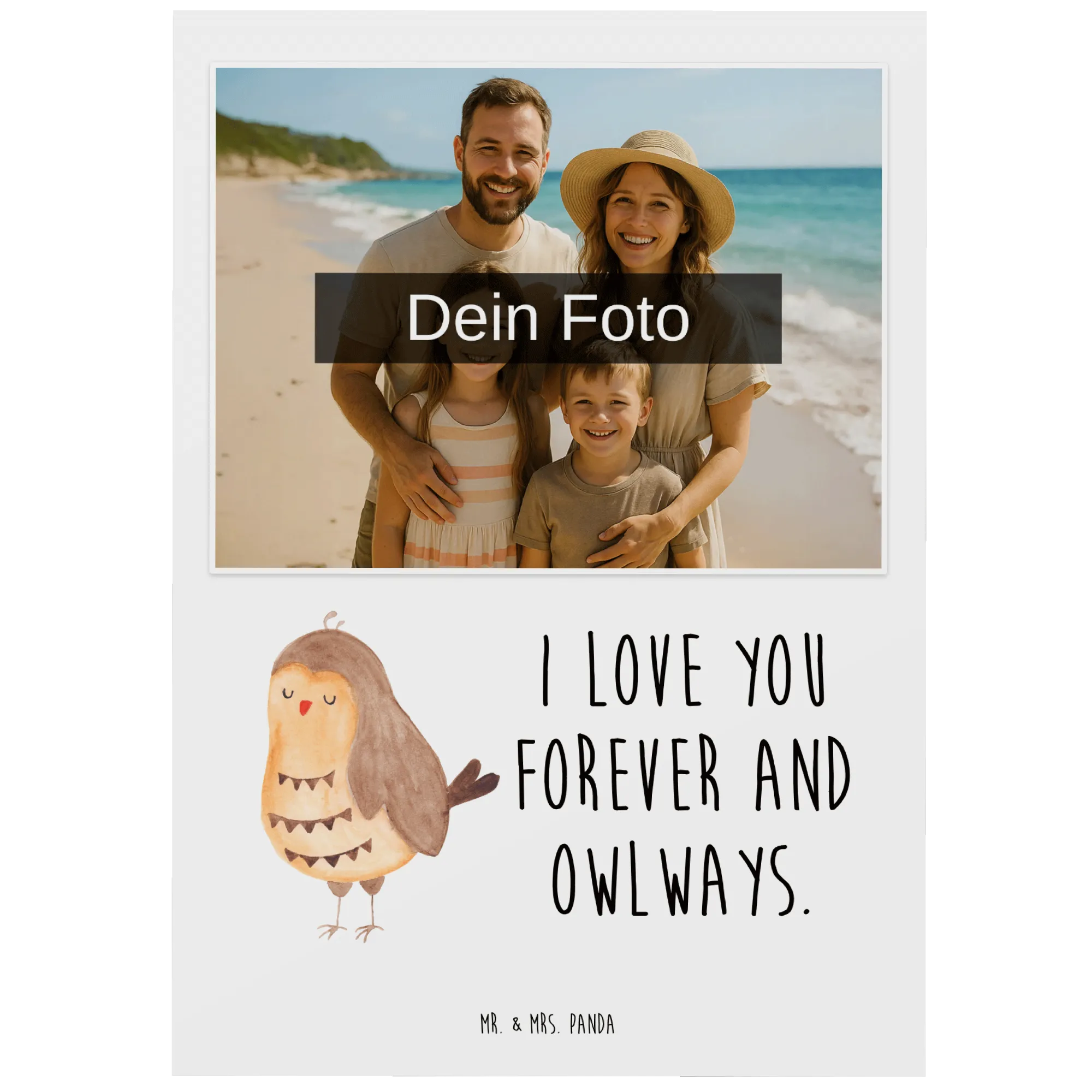 Die personalisierte Foto Postkarte von Mr. & Mrs. Panda mit dem Motif Eule Zufrieden ist das perfekte Geschenk für alle, die Romantik und Humor lieben! Diese originelle Postkarte bringt sowohl Freunde als auch Partner zum Schmunzeln. Mit dem witzigen Spruch „I love you forever and owlways“ wird jeder, der sie sieht, garantiert ein Lächeln auf den Lippen haben. Die Eule in fröhlichen Farben und ihrem beruhigenden Ausdruck ist eine wundervolle Art, Zuneigung auszudrücken und jemandem eine besondere Freude zu machen.