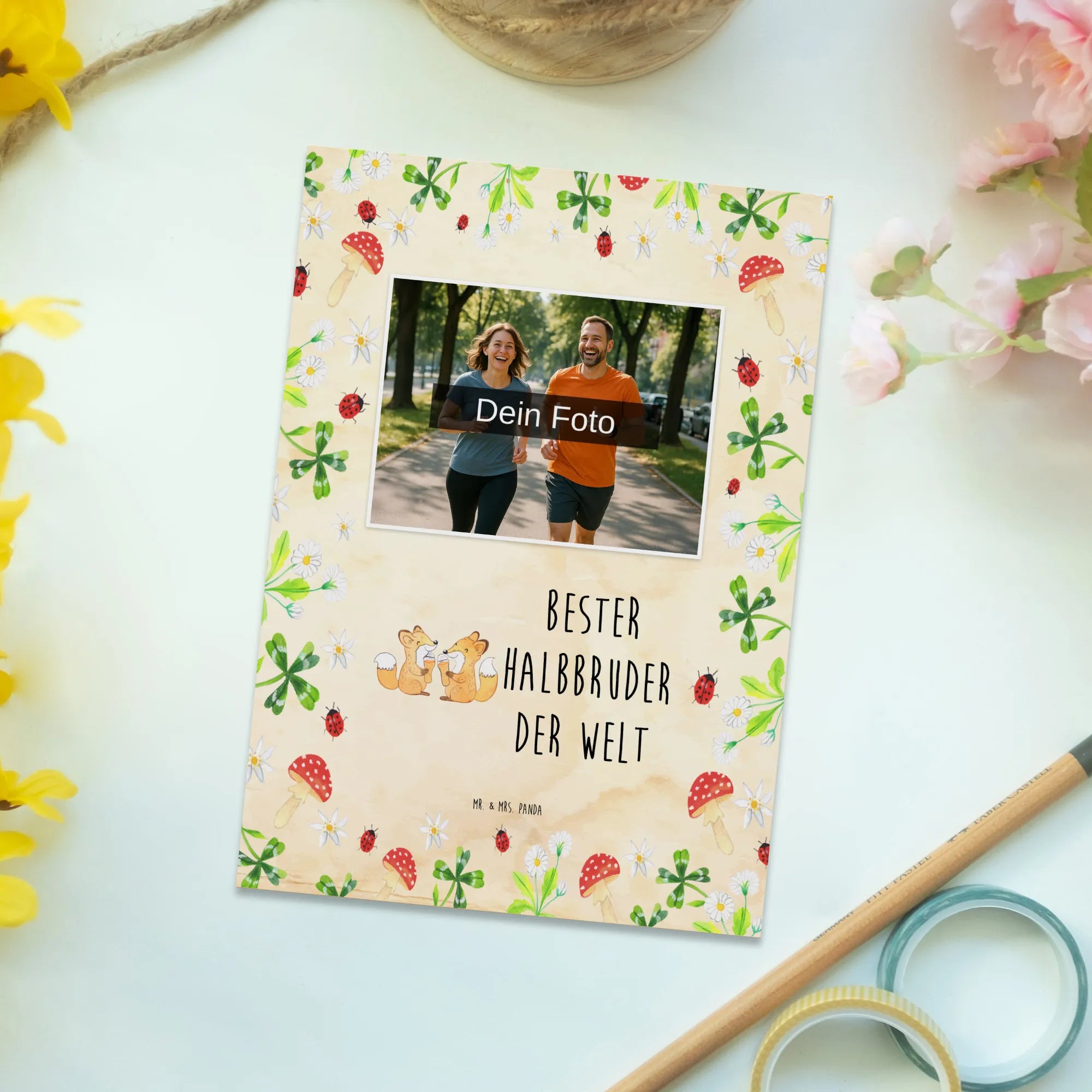 Personalisierte Foto Postkarte Fuchs Bester Halbbruder der Welt