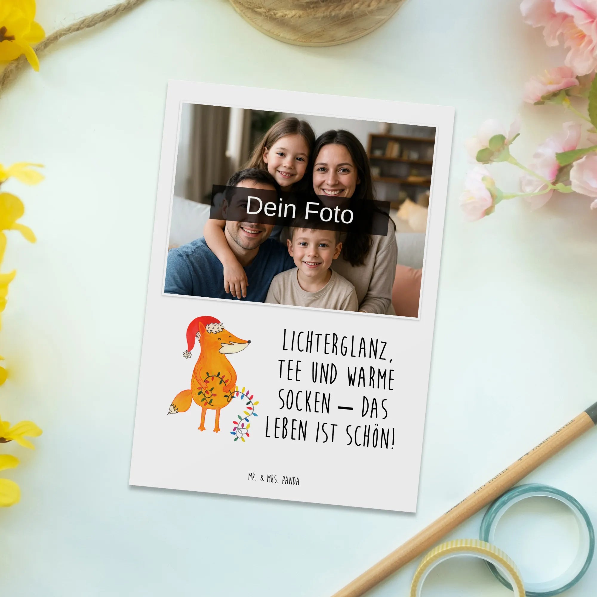 Verbreite Weihnachtsfreude mit einer bezaubernden, personalisierten Foto Postkarte von Mr. & Mrs. Panda – gestalte sie noch heute!