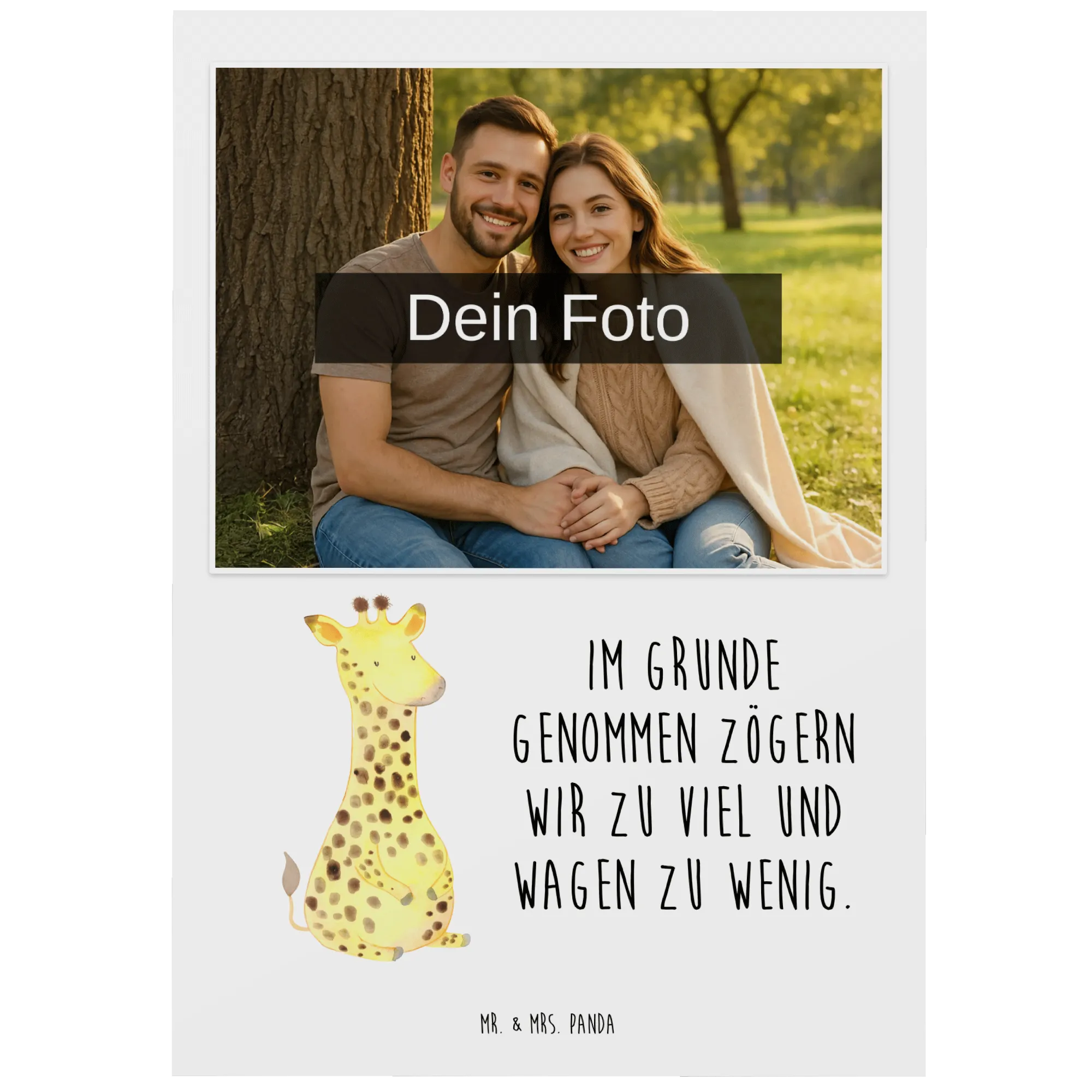 Die personalisierte Foto Postkarte mit dem süßen Motiv "Giraffe Zufrieden" von Mr. & Mrs. Panda ist das perfekte Geschenk für alle, die das Abenteuer Afrika in ihr Zuhause bringen möchten. Diese Postkarte ist mehr als nur ein Stück Papier; sie ist ein Stück Freude und Zufriedenheit, das jedem Empfänger ein Lächeln ins Gesicht zaubert. Die Giraffe, die zufrieden dasteht, verkörpert nicht nur das Tierreich Afrikas, sondern auch die Leichtigkeit des Lebens und die Freude an kleinen Dingen. Ob für einen lieben Freund, zur Geburt eines Kindes oder einfach nur als kleine Aufmerksamkeit zwischendurch – diese Postkarte trifft garantiert ins Herz.