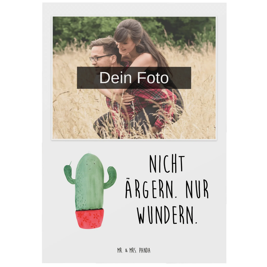 Wenn du auf der Suche nach dem perfekten Geschenk für eine Kollegin oder einen Kollegen bist, dann ist die personalisierte Foto Postkarte mit dem wütenden Kaktus aus der Kaktus-Kollektion von Mr. & Mrs. Panda genau das Richtige für dich! Diese einzigartig gestaltete Postkarte bringt nicht nur ein Lächeln in den Büroalltag, sondern sorgt auch für Gesprächsstoff am Arbeitsplatz und kann sogar als kleine Aufheiterung für einen selbst zum Einsatz kommen. Die liebevoll handgezeichneten Kakteen von Mrs. Panda, versehen mit dem Spruch 'Nicht ärgern. Nur wundern.', sind der ideale Weg, um einem Kollegen zu zeigen, dass du seine Laune bemerkst, ohne es direkt anzusprechen.