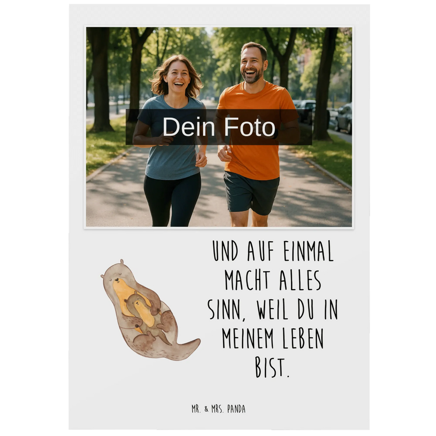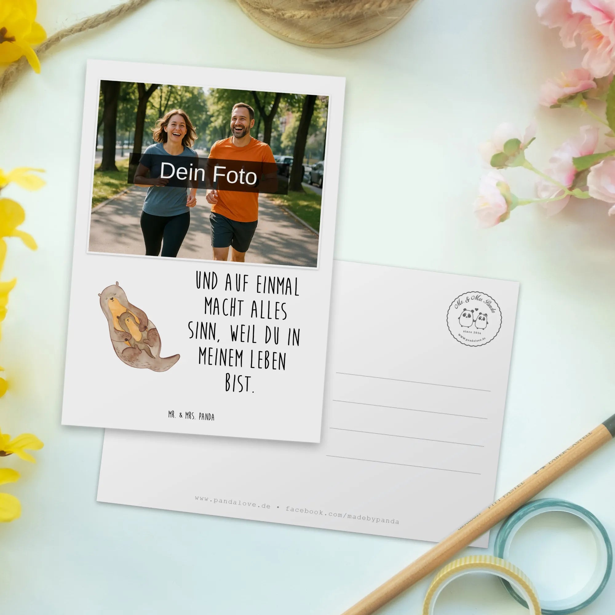 Die personalisierte Foto Postkarte mit dem süßen Motiv "Otter mit Kind" aus der Otter-Kollektion von Mr. & Mrs. Panda ist das perfekte Geschenk für alle, die die Liebe zur Tierwelt und insbesondere zu Ottern teilen. Wenn du an besondere Anlässe wie Geburtstage, Hochzeiten oder Taufen denkst, dann ist diese Postkarte genau das Richtige. Sie bringt nicht nur Freude, sondern zeigt auch eine persönliche Note, die ein Lächeln ins Gesicht zaubert.