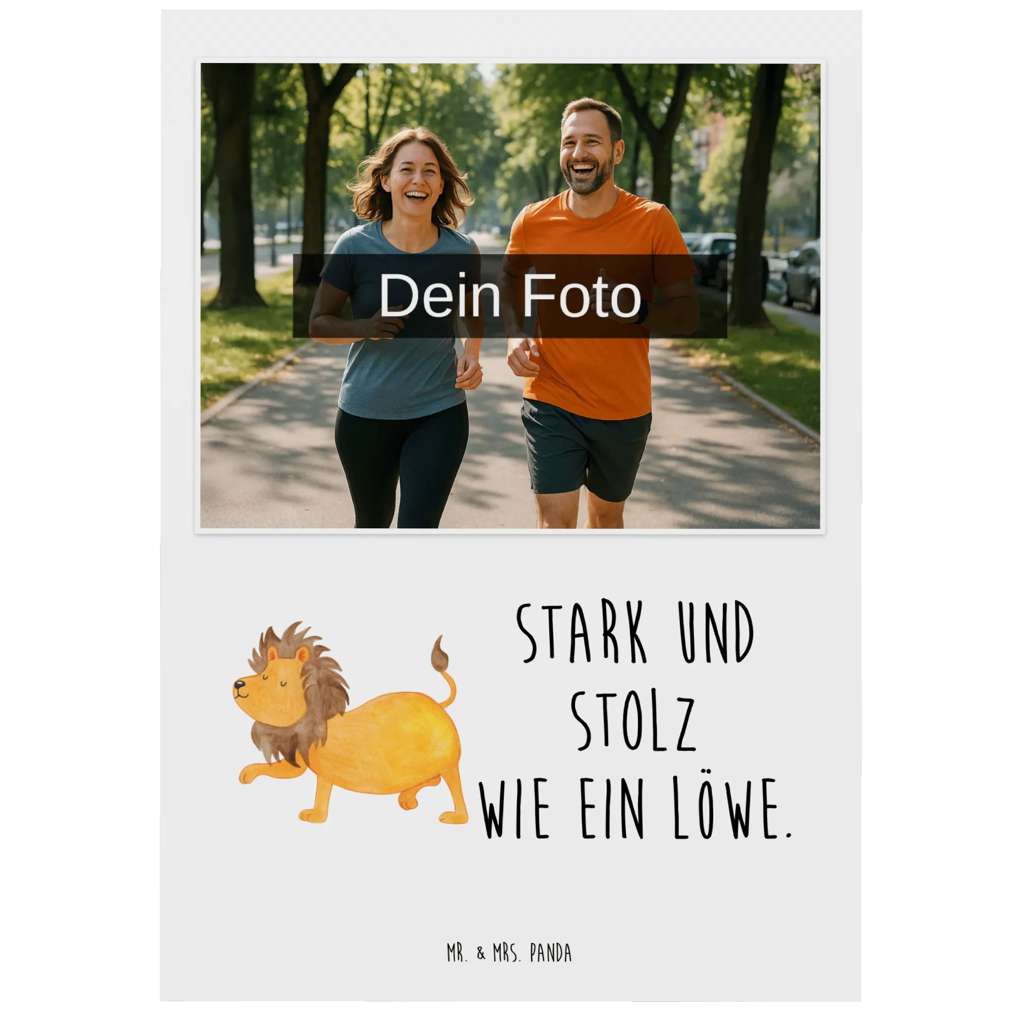 Personalisierte Foto Postkarte Sternzeichen Löwe – klein, liebevoll und voller Aussagekraft. Diese Postkarte von Mr. & Mrs. Panda ist das ideale Geschenk für alle Löwen: stolz, warmherzig und mit einem Augenzwinkern. Mit dem handgezeichneten Löwenmotiv und dem schönen Spruch „Stark und stolz