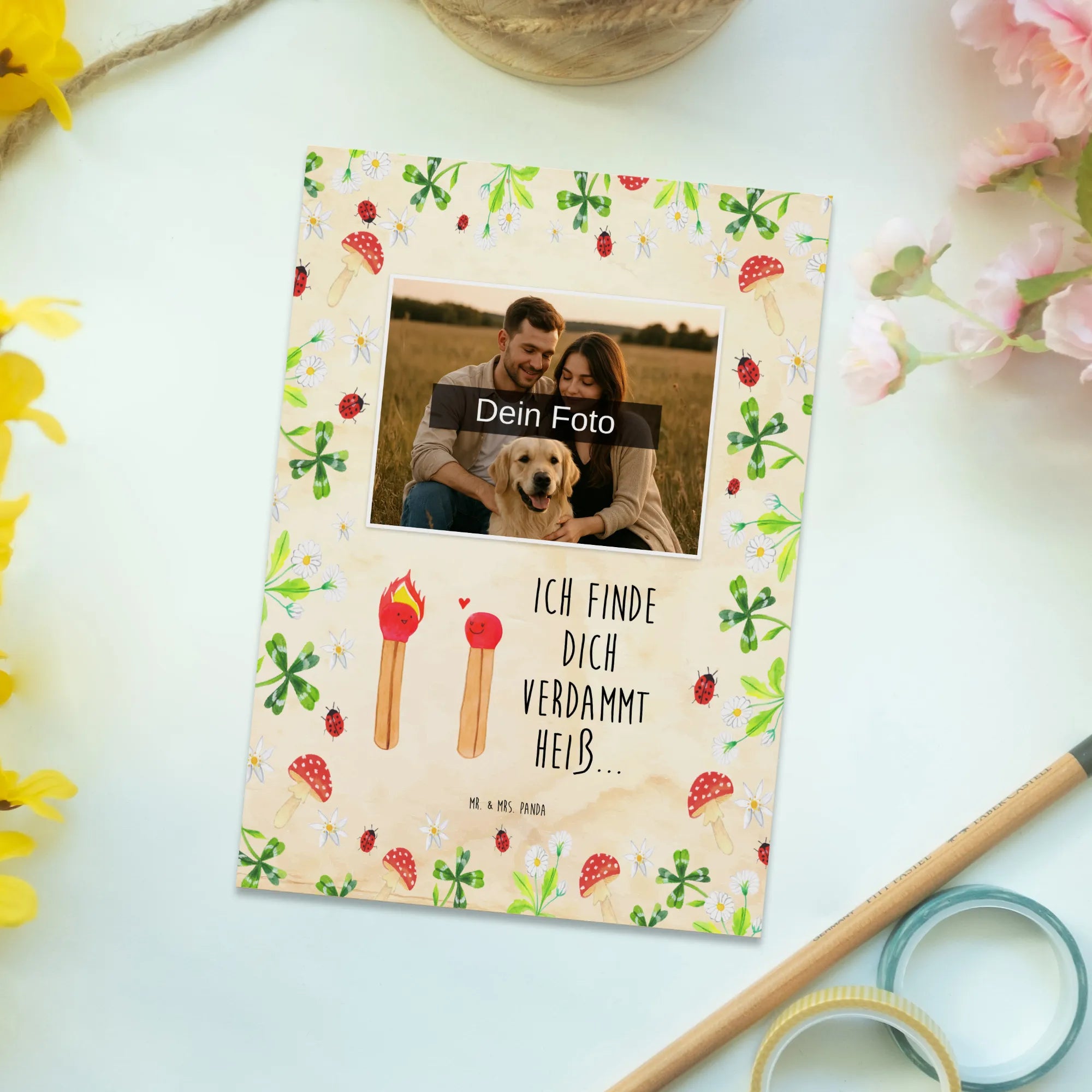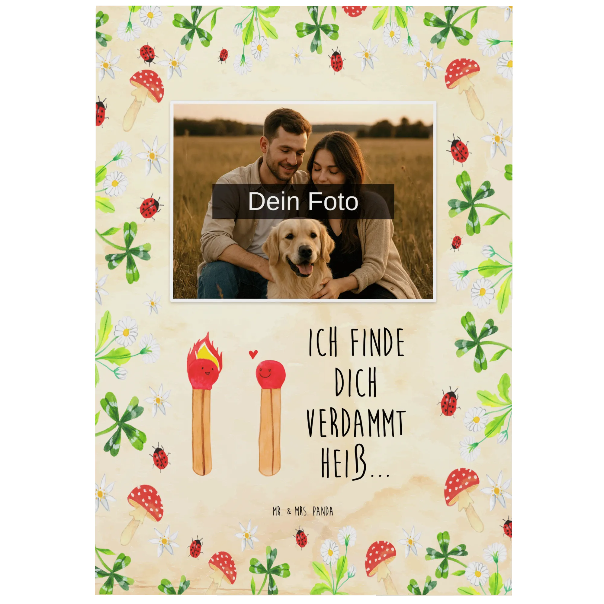 Entdecke die zauberhafte Personalisierte Foto Postkarte von Mr. & Mrs. Panda mit dem einzigartigen Motiv der Streichhölzer. Diese Karte ist das perfekte Geschenk für all deine besonderen Anlässe – sei es für deinen Freund, deine Freundin, deinen Ehemann oder deine Ehefrau. Der Spruch "Ich finde dich verdammt heiß..." bringt garantiert ein Lächeln auf die Gesichter deiner Liebsten. Ob zum Jahrestag, Hochzeitstag, zur Engagement Feier oder einfach nur so, um deine Liebe auszudrücken – diese Postkarte ist die ideale Wahl.