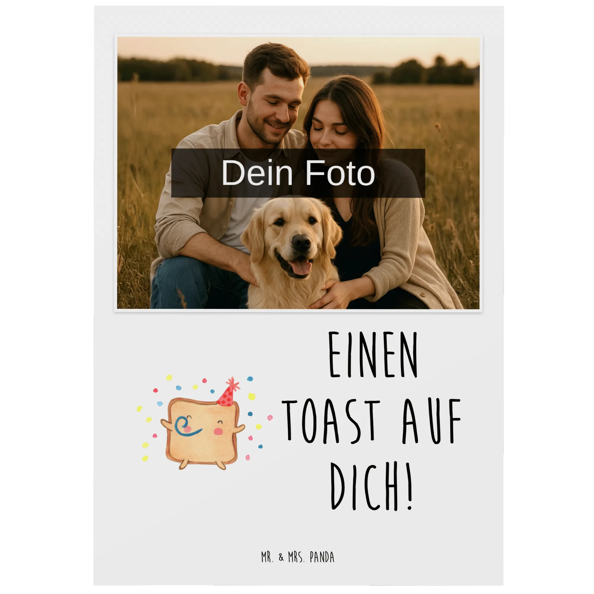 Für alle, die Liebe in Bildern festhalten wollen, ist die personalisierte Foto Postkarte mit dem Motto "Toast Party" von Mr. & Mrs. Panda das perfekte Geschenk! 🎉