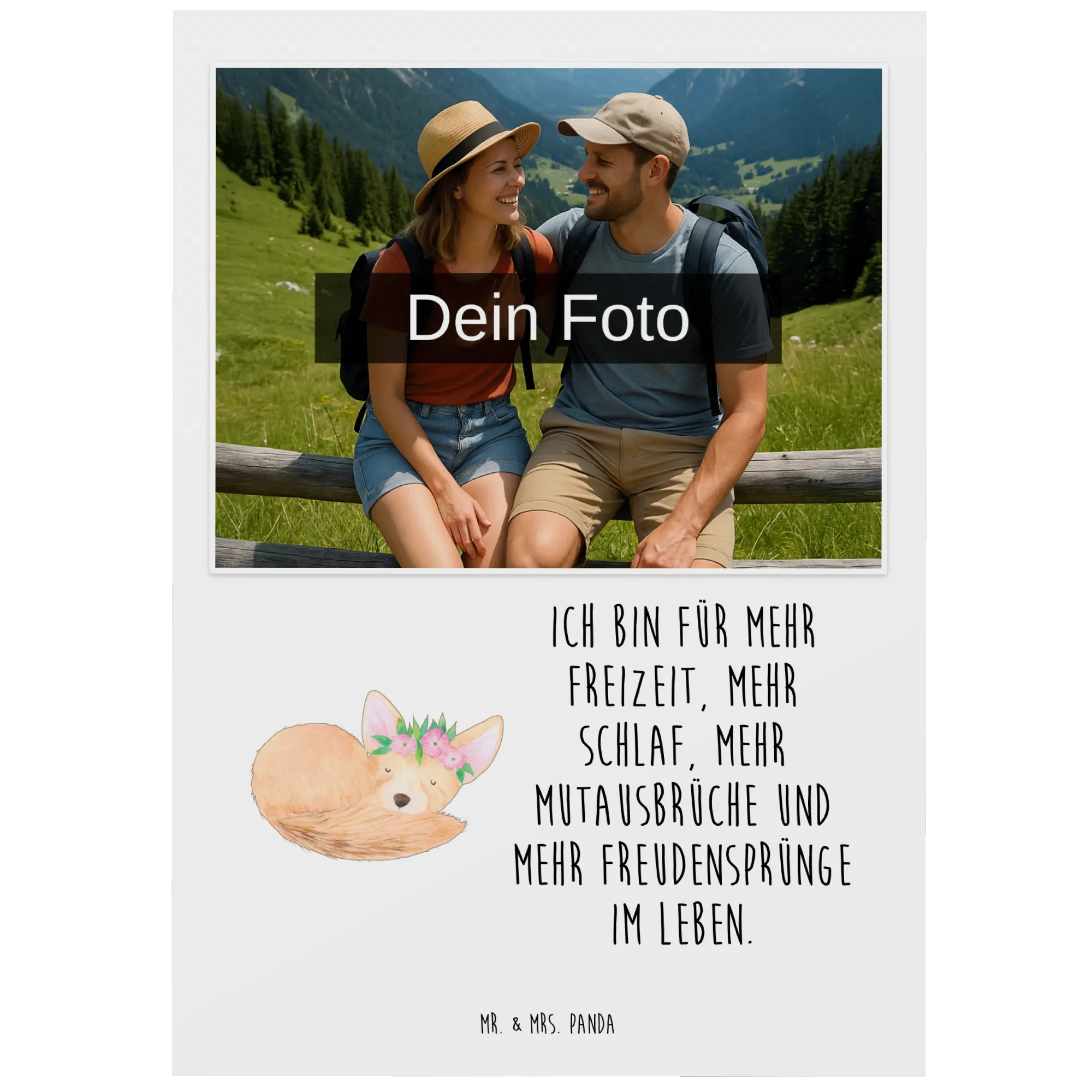Entdecke die bezaubernde, personalisierte Foto Postkarte mit dem wunderschönen Motiv des Wüstenfuchses im Blumenkranz aus Afrika. Diese einzigartige Postkarte ist mehr als nur ein einfaches Kartenstück - sie erzählt Geschichten von der exotischen Tierwelt Afrikas und bringt ein Stück Natur zu dir nach Hause. Der süße Wüstenfuchs, liebevoll von Mr. & Mrs. Panda handgezeichnet, steckt voller Lebensfreude und bedeutet, dass du an all die Glücksmomente im Leben erinnert wirst.