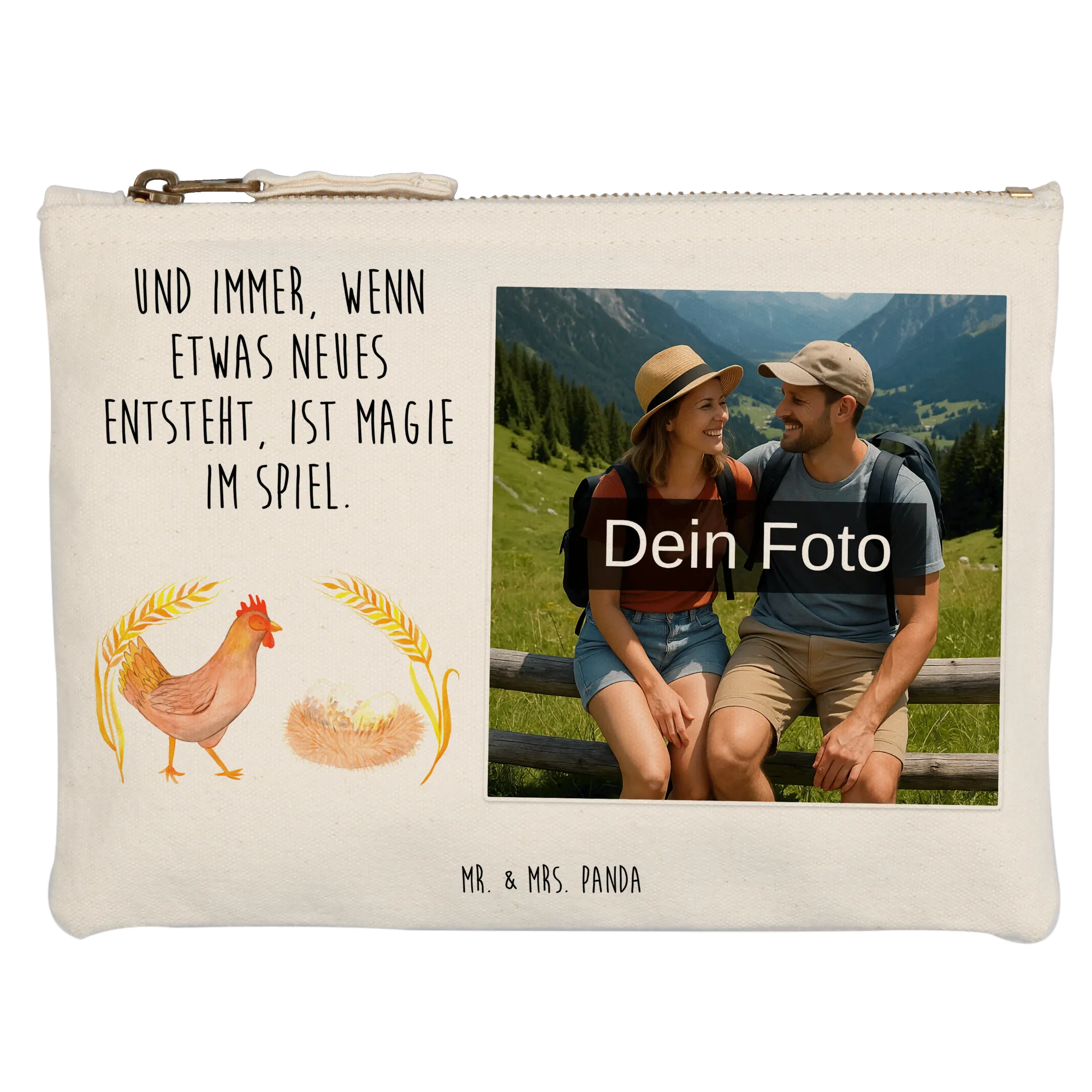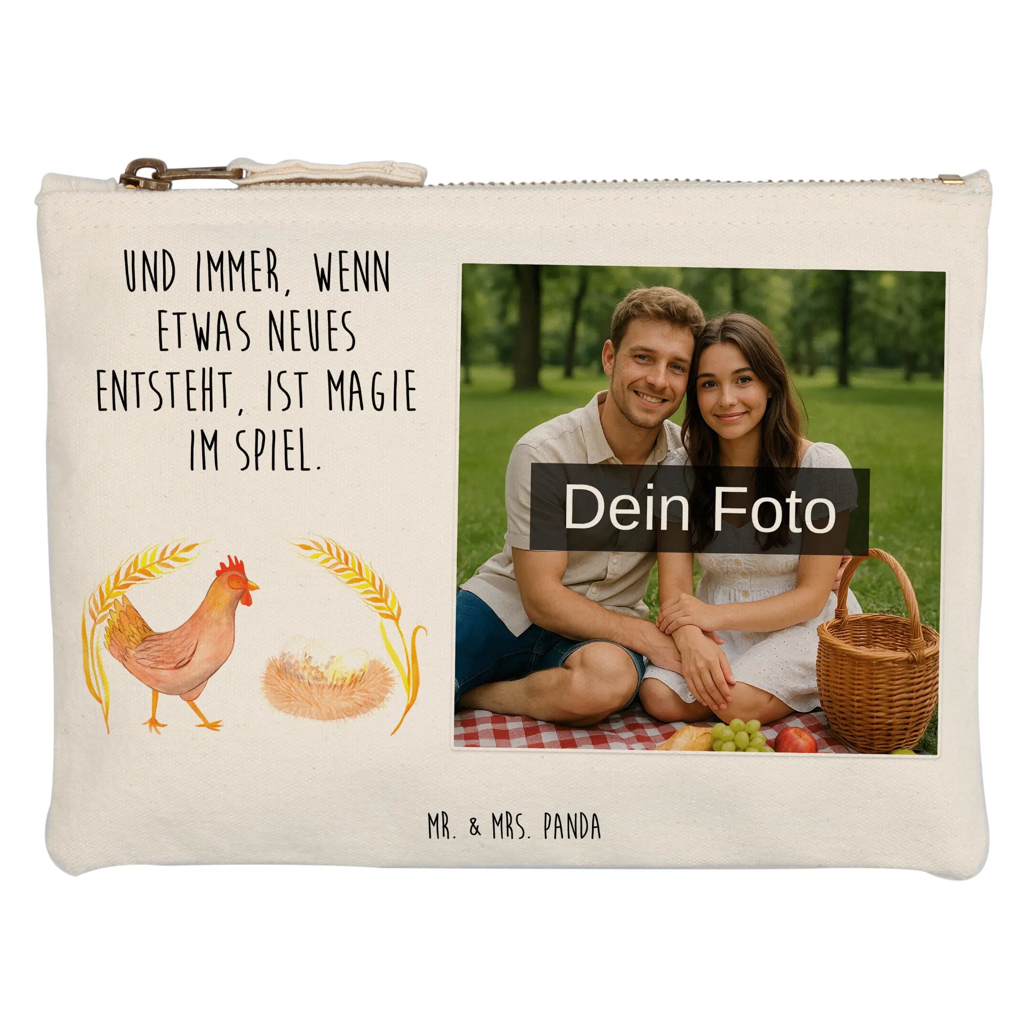 Entdecke die zauberhafte, personalisierte Foto Schminktasche von Mr. & Mrs. Panda! Diese einzigartige Tasche ist nicht nur praktisch, sondern auch ein echter Hingucker. Sie wird hochwertig bedruckt mit unseren süßen Motiven und Sprüchen. Darf es dein persönliches Wunschfoto sein? Lade einfach dein Lieblingsbild hoch und gestalte deine eigene Tasche! Die Maße sind in verschiedenen Größen erhältlich, sodass du die perfekte Größe für all deine Kosmetikartikel findest. Ob für den Alltag, Reisen oder als stilvolles Aufbewahrungstalent für deine Stifte – diese Tasche ist vielseitig einsetzbar! Das Material ist 100% weiche Baumwolle, was die Tasche zusätzlich besonders angenehm macht. Der Clou: Die umsäumten und eingeschlagenen Innennähte sorgen dafür, dass die Tasche formbeständig bleibt, egal was du hineinlegst. Pflege? Kein Problem! Eine lauwarme Handwäsche wird empfohlen, damit deine Tasche lange wie neu aussieht. Bitte achte darauf, dass das hochgeladene Foto eine hohe Auflösung hat, damit das Druckergebnis traumhaft wird. Außerdem solltest du darauf achten, den richtigen Bildausschnitt zu wählen, damit deine besten Momente perfekt in Szene gesetzt werden. Mache jeden Tag zu etwas Besonderem mit dieser einzigartigen, personalisierten Schminktasche!